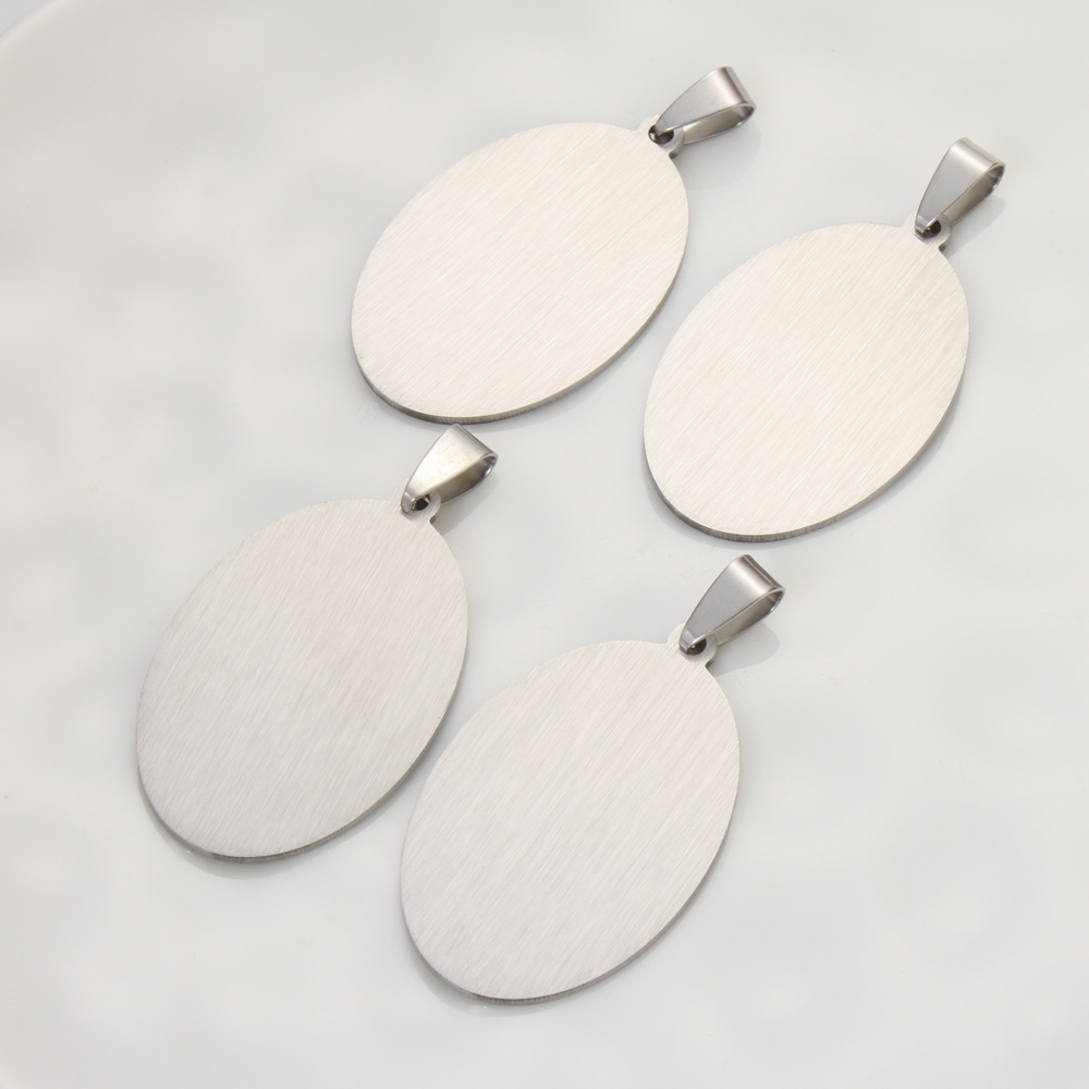 Tag en acier inoxydable, ovale plat, couleur originale Environ 2mm Vendu par sac