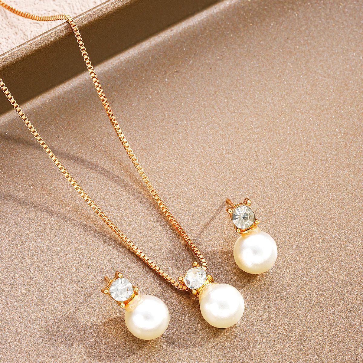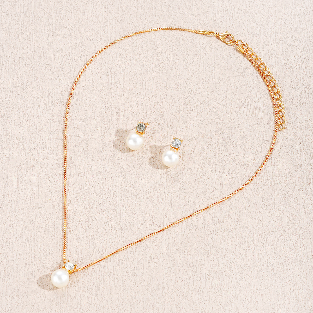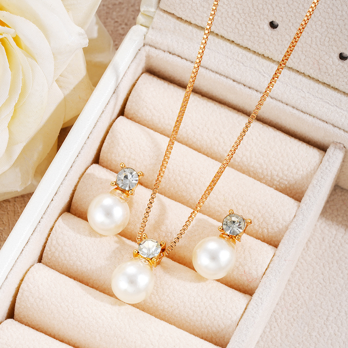 Zircon Micro Pave alliage de zinc cubes Parures, Boucle d’oreille stud & collier, avec perle de plastique, Placage, 2 pièces & pavé de micro zircon & pour femme, doré, Vendu par fixé