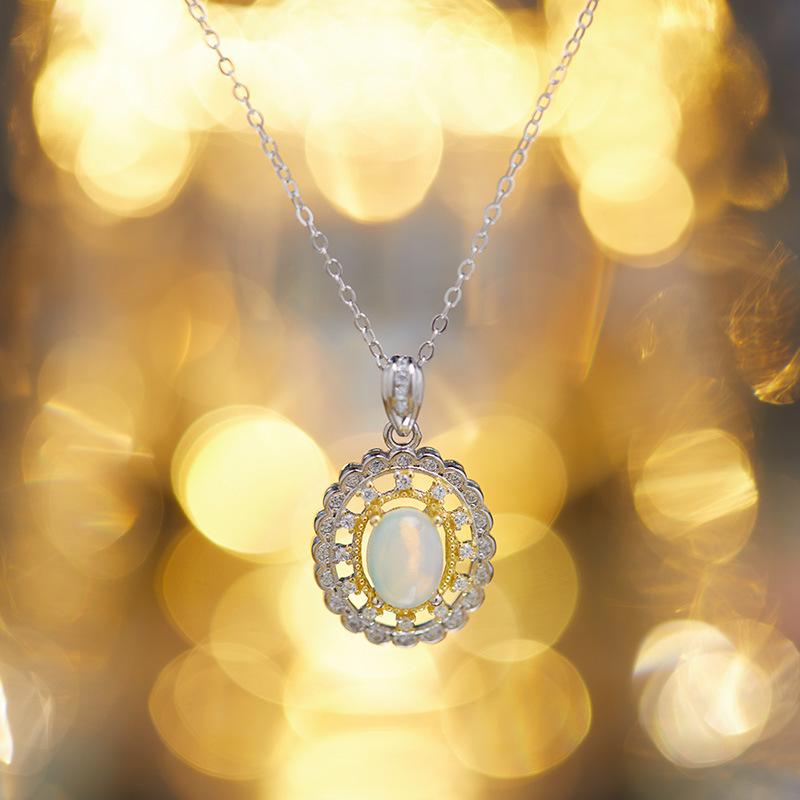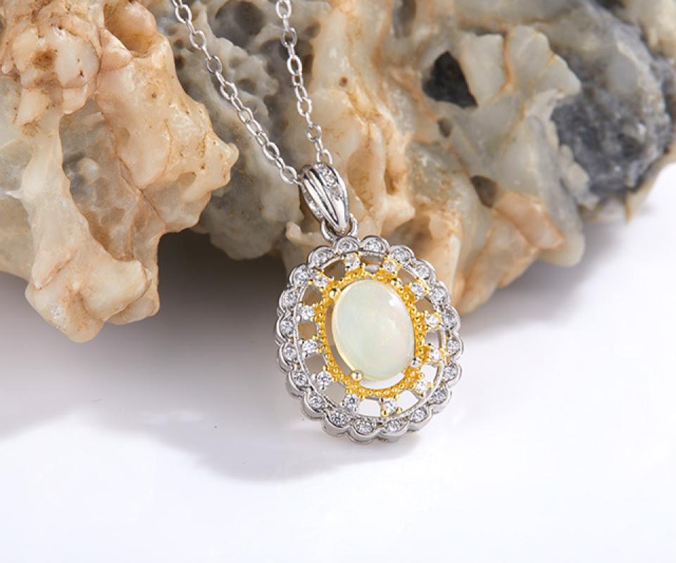 Zircon cubique Micro Pave collier en argent sterling, argent sterling 925, avec Opale, Placage de couleur d'or, bijoux de mode & pavé de micro zircon, plus de couleurs à choisir, Vendu par PC
