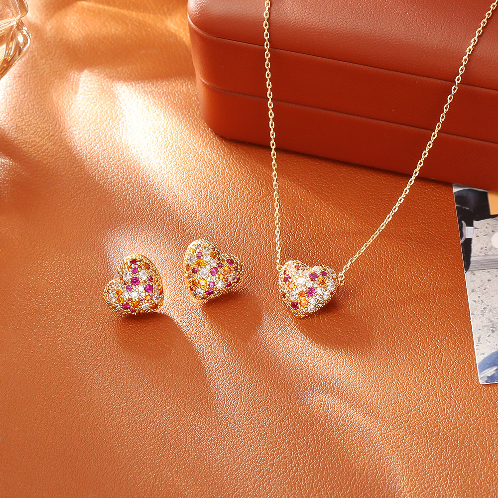 Zircon cubique Micro Pave parures de bijoux en laiton, coeur, Plaqué d'or, styles différents pour le choix & pavé de micro zircon & pour femme, Vendu par PC