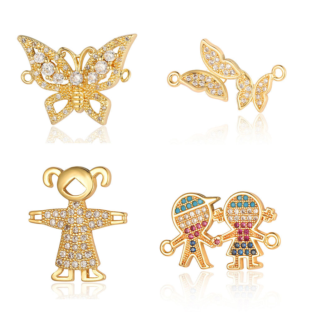 Zircon pavent Laiton Connector, Placage de couleur d'or, DIY & styles différents pour le choix & pavé de micro zircon & boucle de 1/1, plus de couleurs à choisir, Vendu par PC