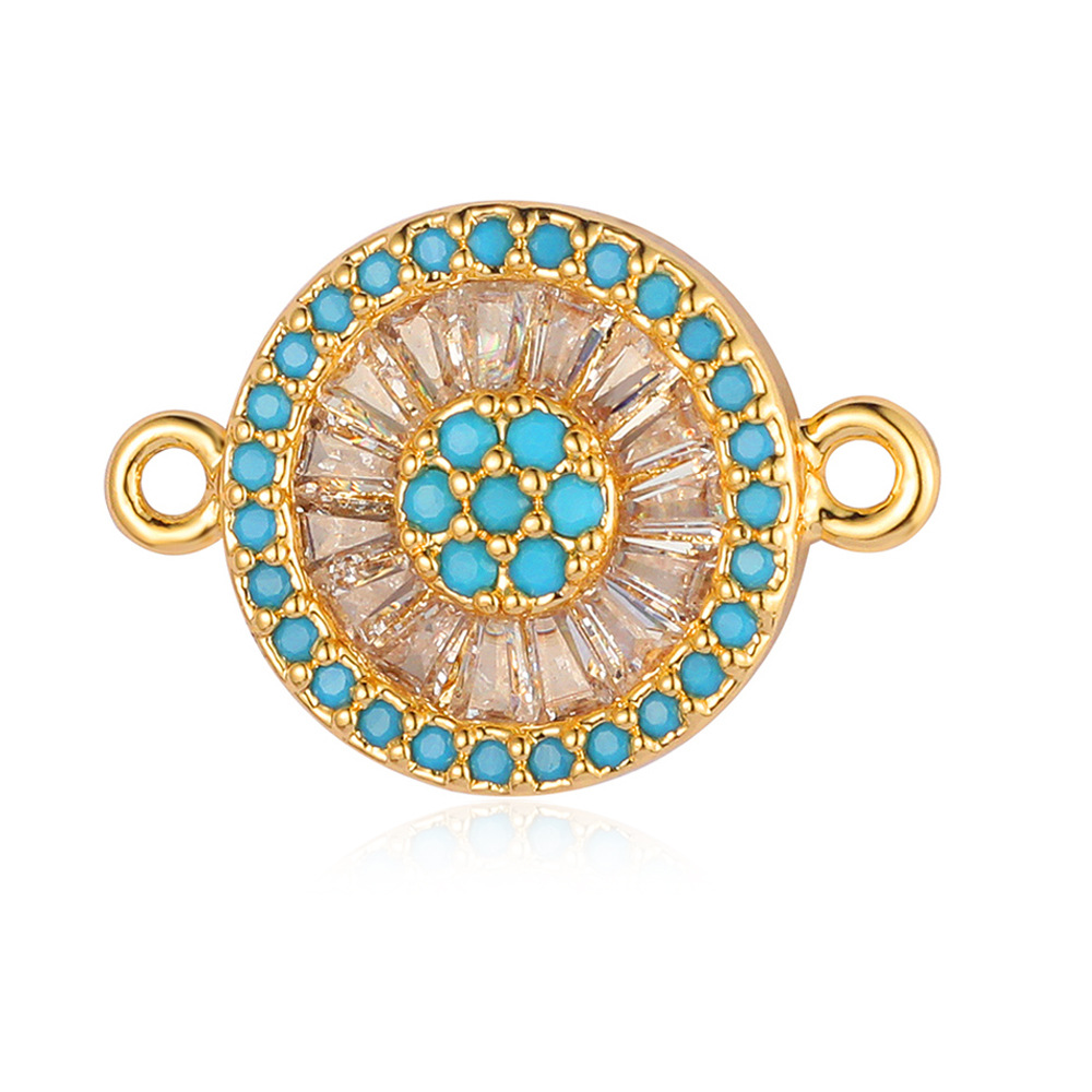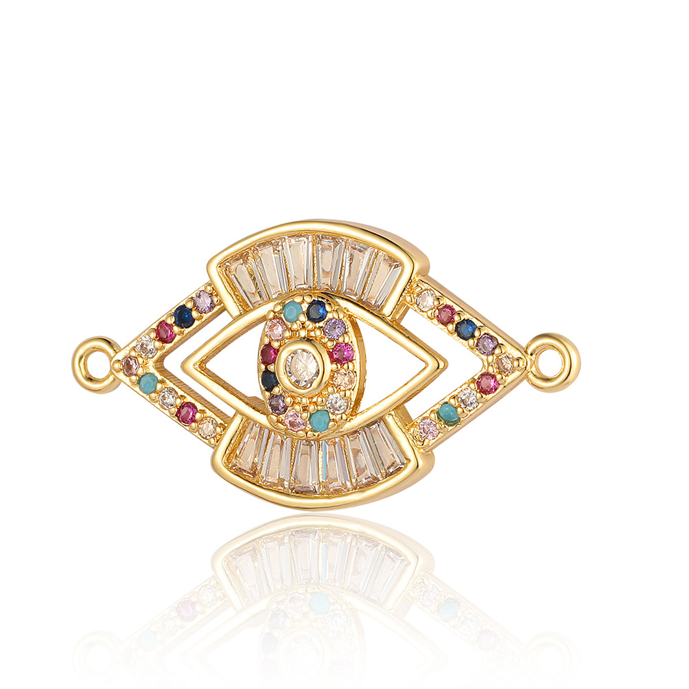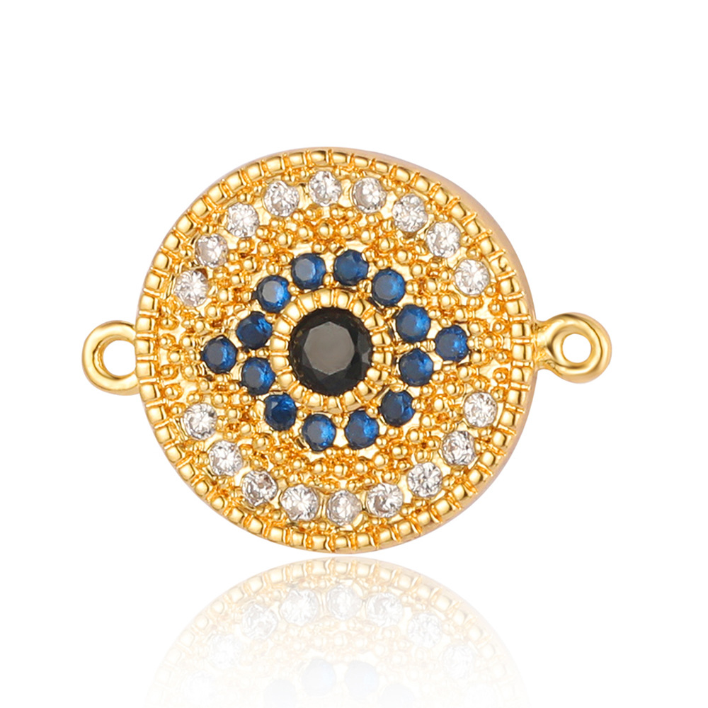 Zircon pavent Laiton Connector, Plat rond, Placage, avec diagramme de l'œil & pavé de micro zircon & autocollant époxyde & boucle de 1/1, plus de couleurs à choisir Environ 1mm, Vendu par PC