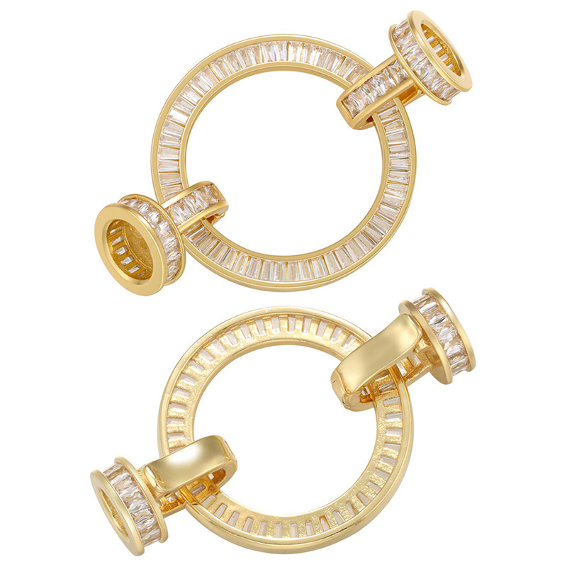 Zircon pavent Laiton Connector, Plat rond, Plaqué d'or, pavé de micro zircon & boucle de 1/1 Environ 1mm, Vendu par PC