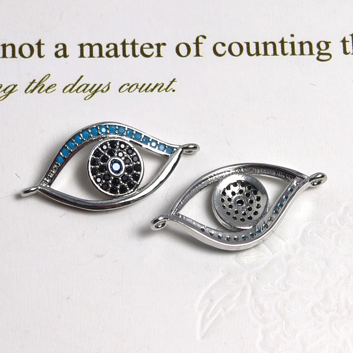 Zircon pavent Laiton Connector, Plat rond, Placage, avec diagramme de l'œil & pavé de micro zircon & autocollant époxyde & boucle de 1/1, plus de couleurs à choisir Environ 1mm, Vendu par PC