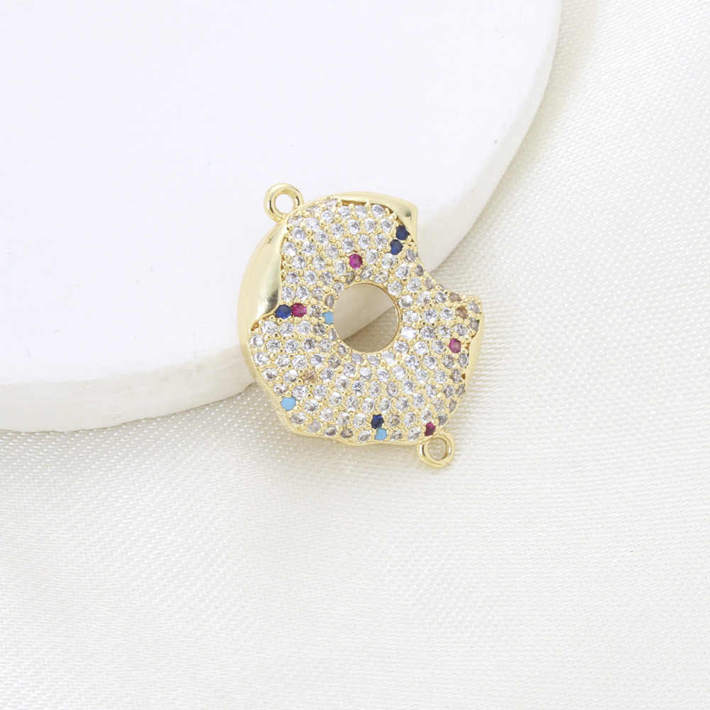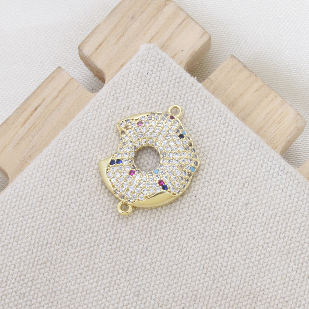 Zircon pavent Laiton Connector, Plat rond, Plaqué d'or, pavé de micro zircon & boucle de 1/1 Environ 1mm, Vendu par PC