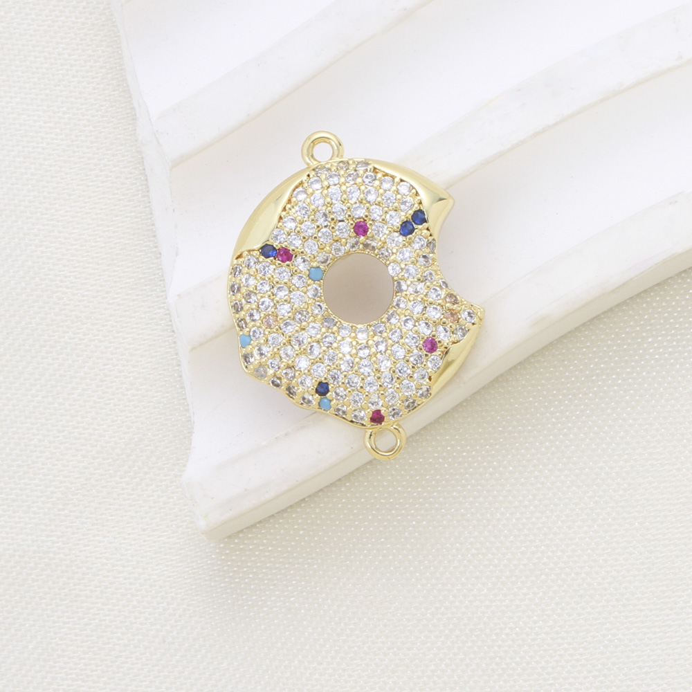 Zircon pavent Laiton Connector, avec verre, Plat rond, Placage, pavé de micro zircon & facettes & boucle de 1/1, plus de couleurs à choisir Environ 1.5mm, Vendu par PC