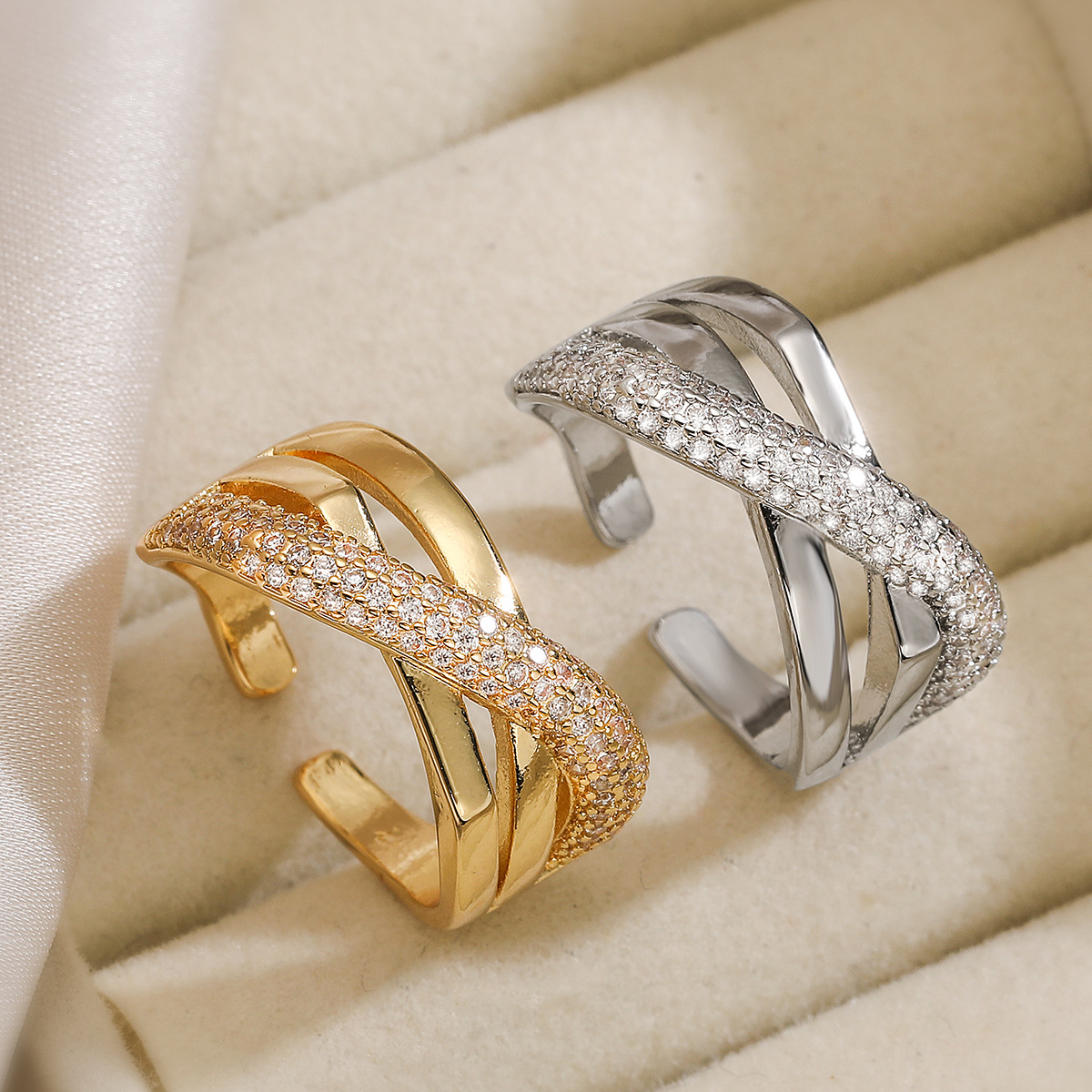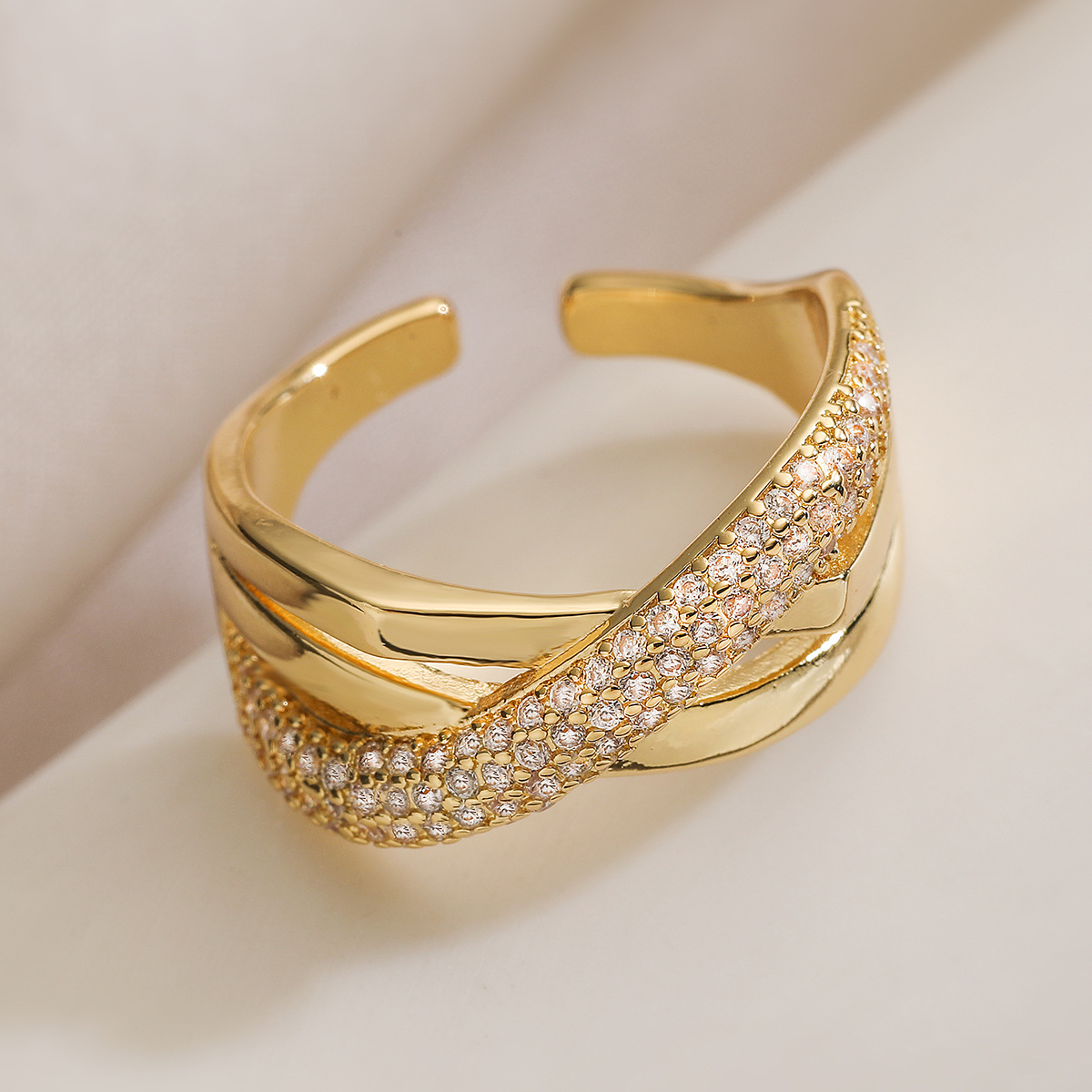 Zircon pavent l'anneau en laiton de doigt, Placage, normes différentes pour le choix & pavé de micro zircon & pour femme & creux, plus de couleurs à choisir, protéger l'environnement, sans nickel, plomb et cadmium, Vendu par PC