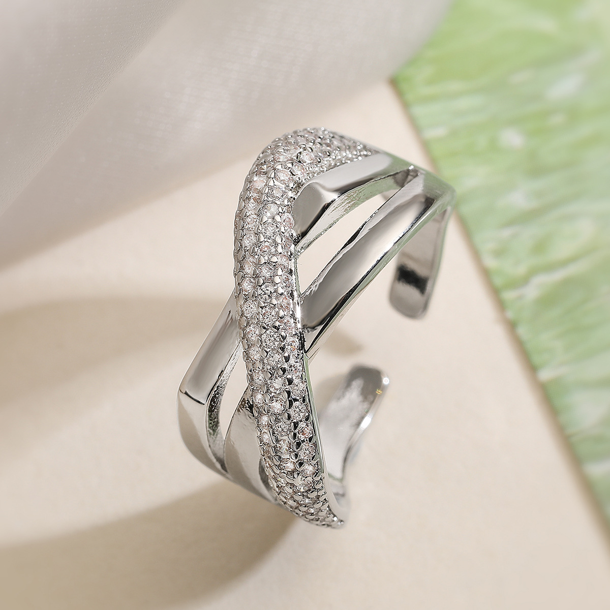 Zircon pavent l'anneau en laiton de doigt, Plaqué de platine, pavé de micro zircon, plus de couleurs à choisir Vendu par PC