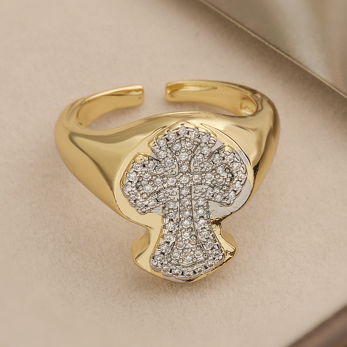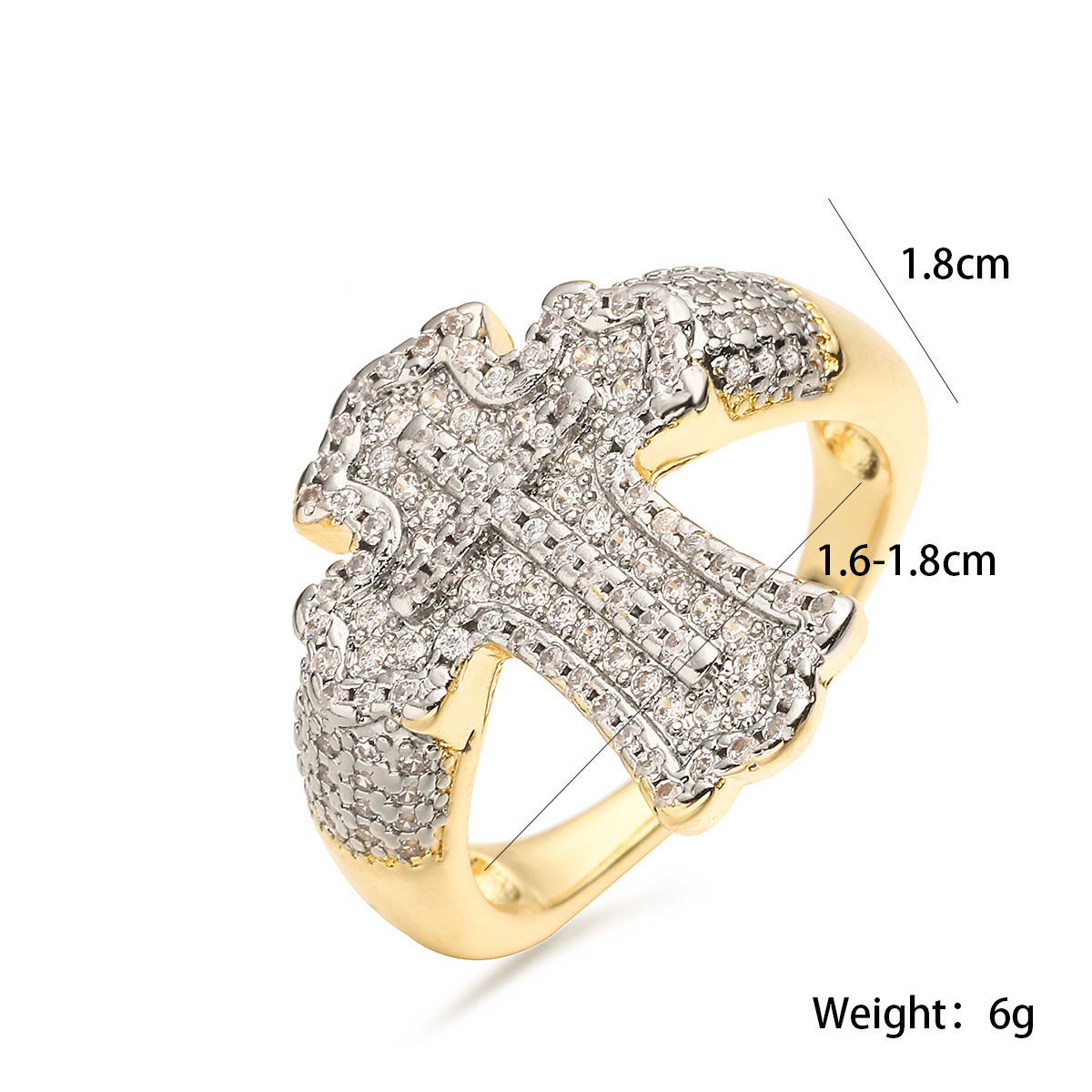 Zircon pavent l'anneau en laiton de doigt, croix, Placage, bijoux de mode & pavé de micro zircon & pour femme, doré, Vendu par PC