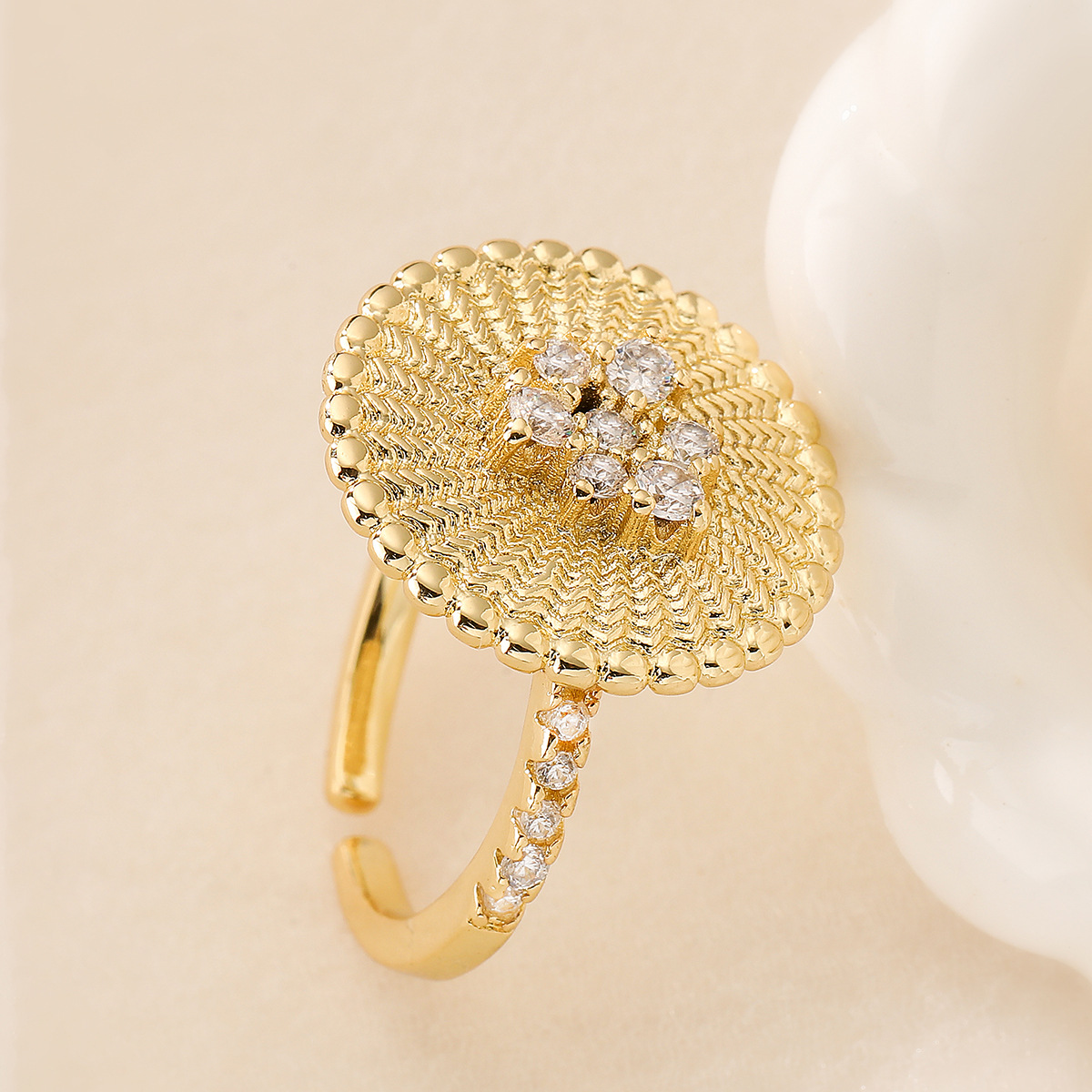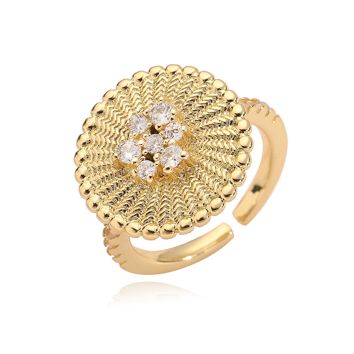 Zircon pavent l'anneau en laiton de doigt, fleur, Placage, pavé de micro zircon, plus de couleurs à choisir, 7mm Vendu par PC