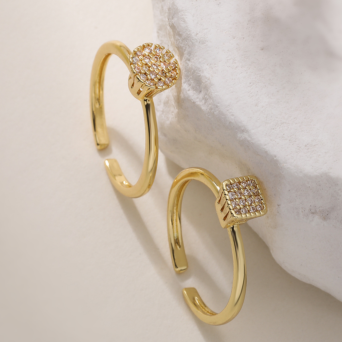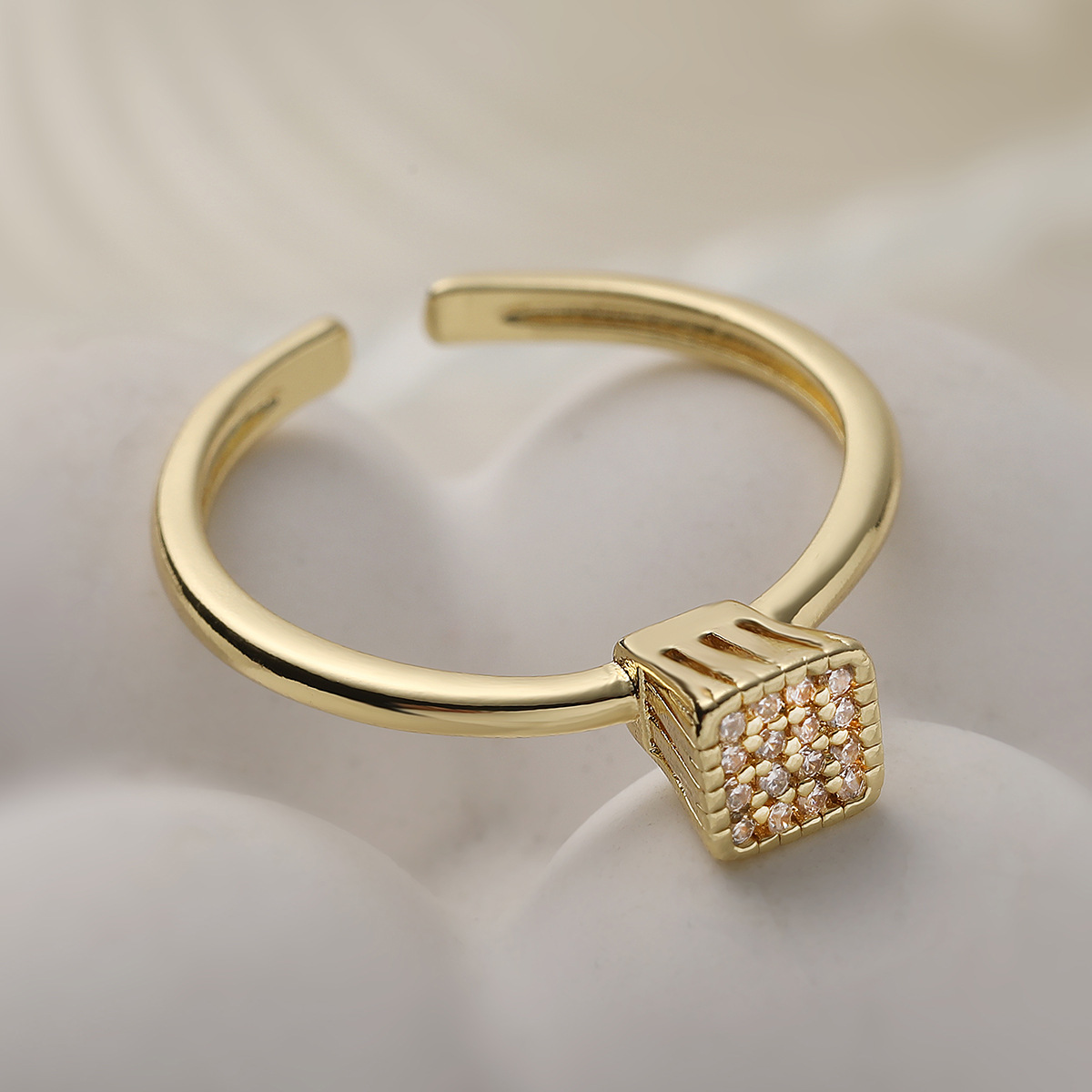 Zircon pavent l'anneau en laiton de doigt, Alliage de cuivre, Motif géométrique, Placage de couleur platine, pavé de micro zircon, plus de couleurs à choisir, 7*7mm, Vendu par PC