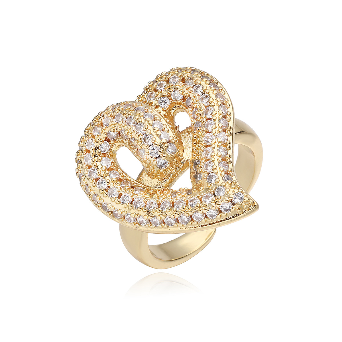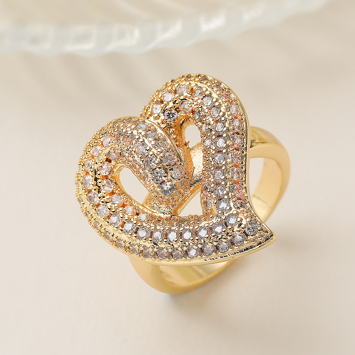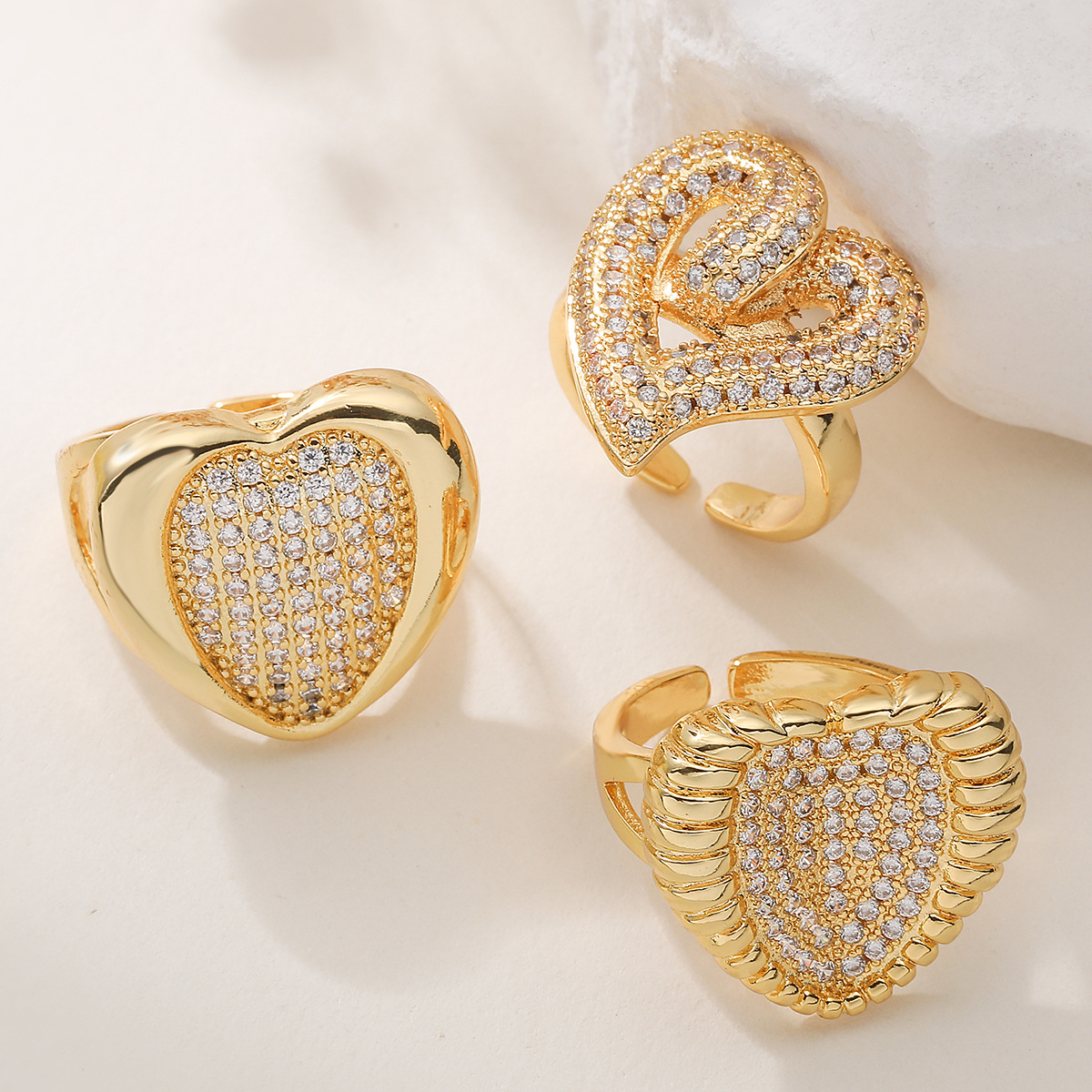 Zircon pavent l'anneau en laiton de doigt, coeur, Plaqué or 18K, styles différents pour le choix & pavé de micro zircon & pour femme, Vendu par PC