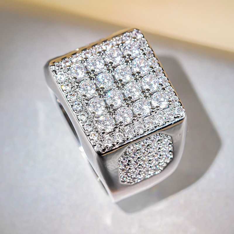 Zircon pavent l'anneau en laiton de doigt, Alliage de cuivre, Motif géométrique, Placage de couleur platine, pavé de micro zircon, plus de couleurs à choisir, 7*7mm, Vendu par PC