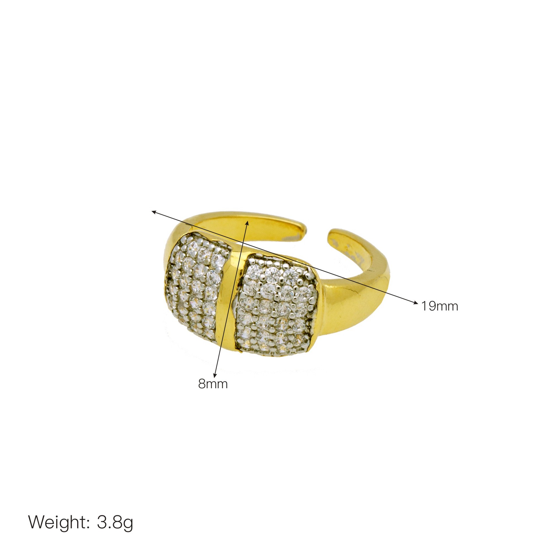 laiton Cuff Bague, Placage, bijoux de mode & pour femme & avec zircone cubique, protéger l'environnement, sans nickel, plomb et cadmium, 8mm,3mm, Vendu par PC