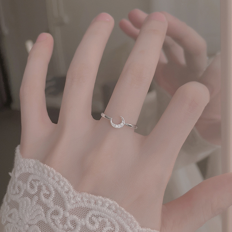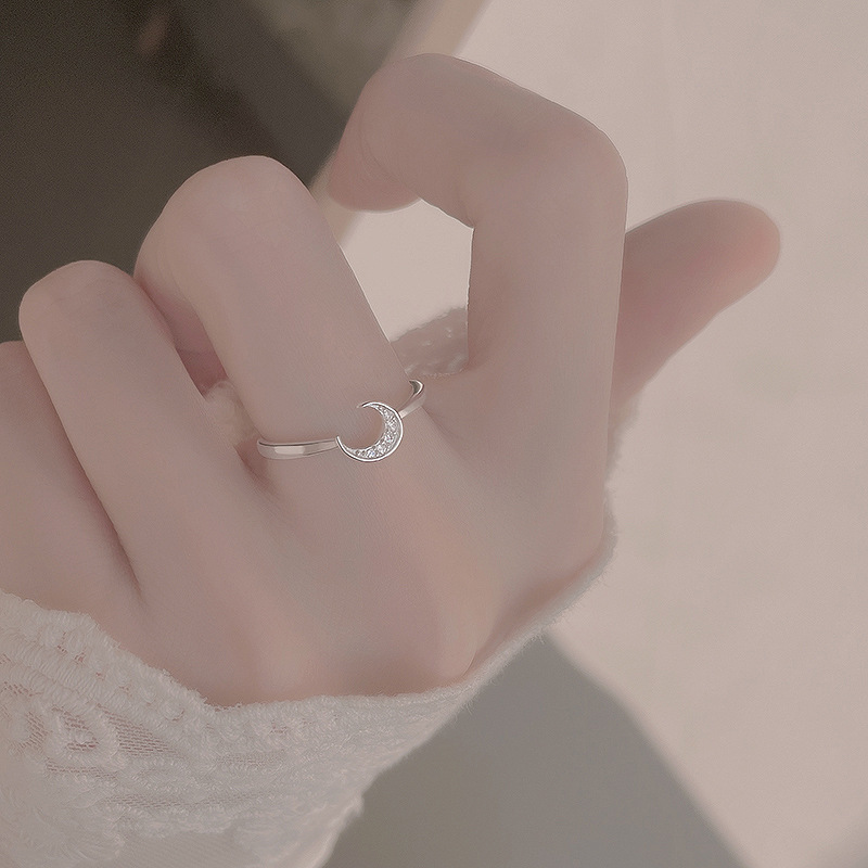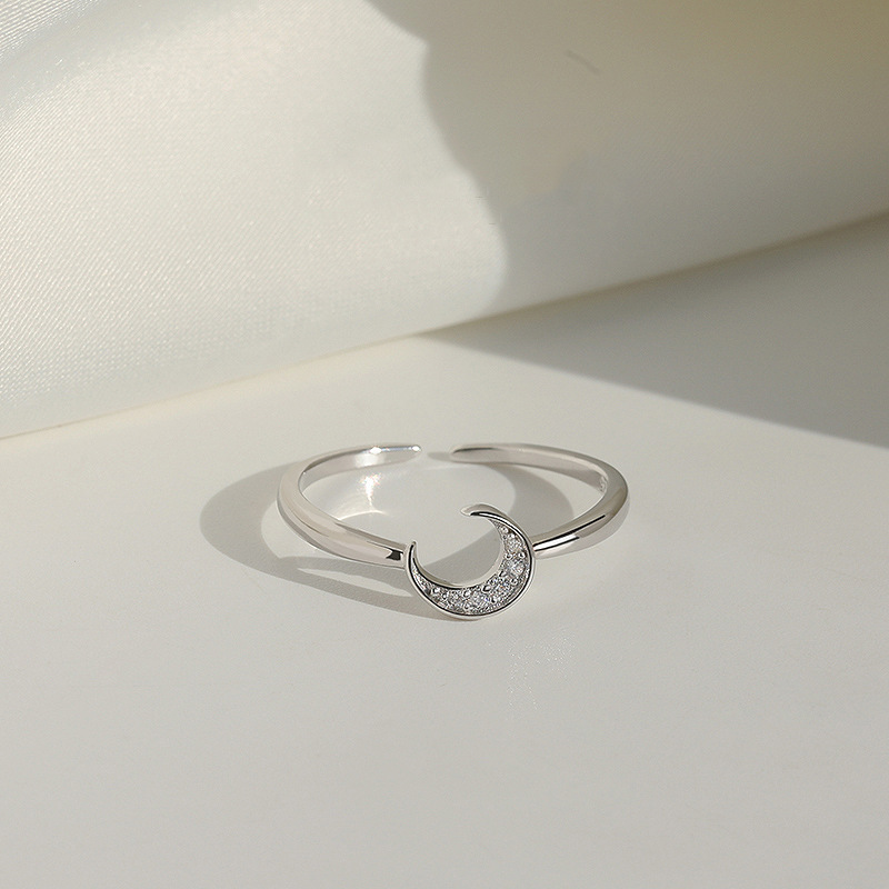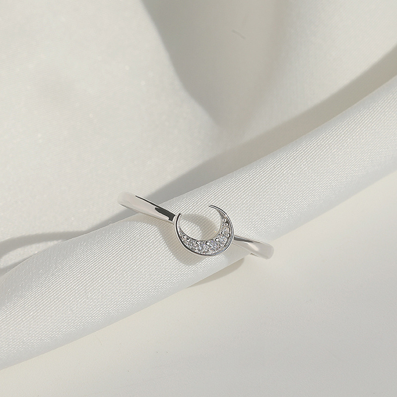 Zircon pavent l'anneau en laiton de doigt, lune, Placage, pavé de micro zircon & pour femme, couleur platine, Vendu par PC