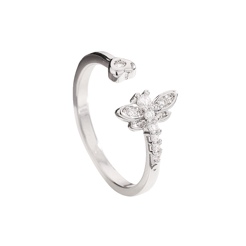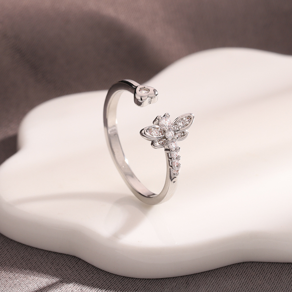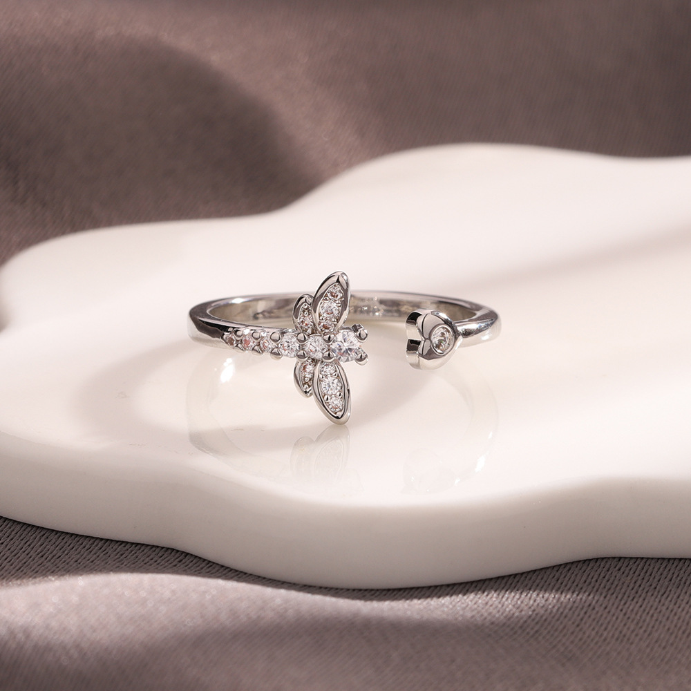 Zircon pavent l'anneau en laiton de doigt, libellule, Placage, pavé de micro zircon & pour femme, couleur platine, Vendu par PC