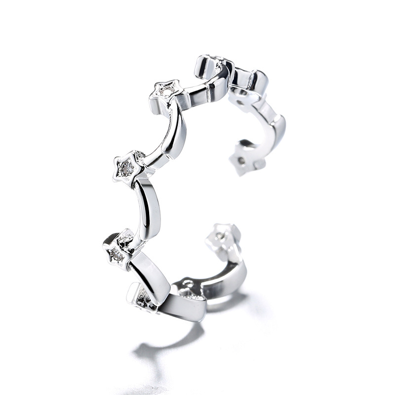 Zircon pavent l'anneau en laiton de doigt, étoile, Placage, pavé de micro zircon & pour femme, couleur platine, Vendu par PC