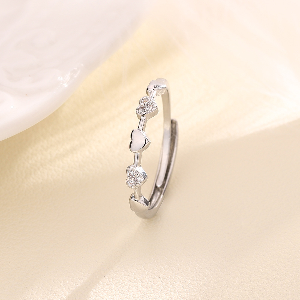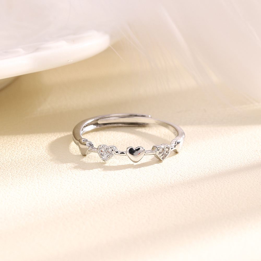 Zircon pavent l'anneau en laiton de doigt, coeur, Placage, pavé de micro zircon & pour femme, couleur platine, Vendu par PC