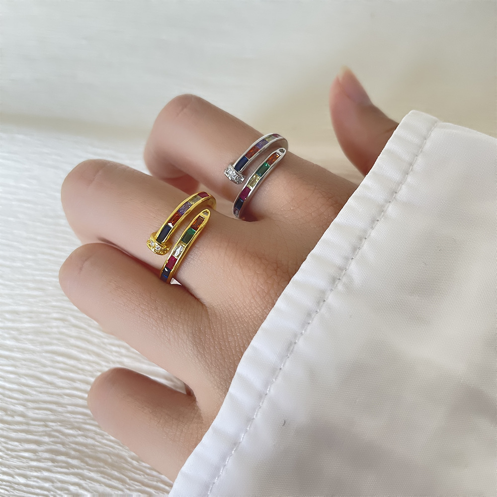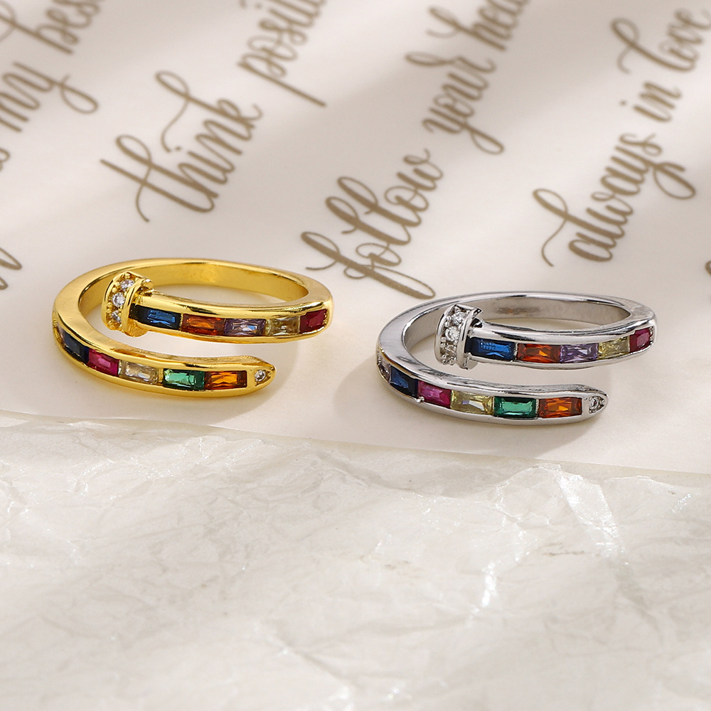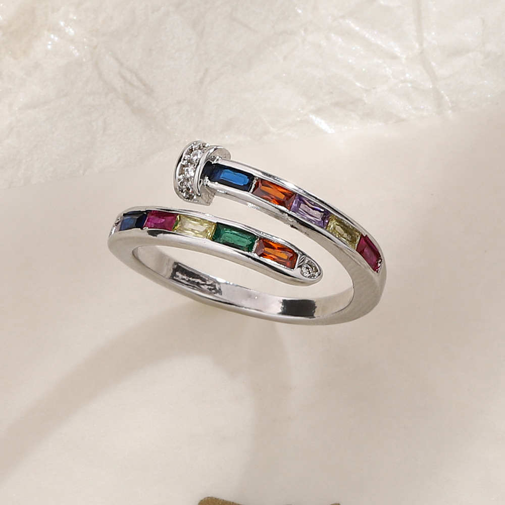 Zircon pavent l'anneau en laiton de doigt, Alliage de cuivre, Motif géométrique, Placage de couleur platine, pavé de micro zircon, plus de couleurs à choisir, 7*7mm, Vendu par PC