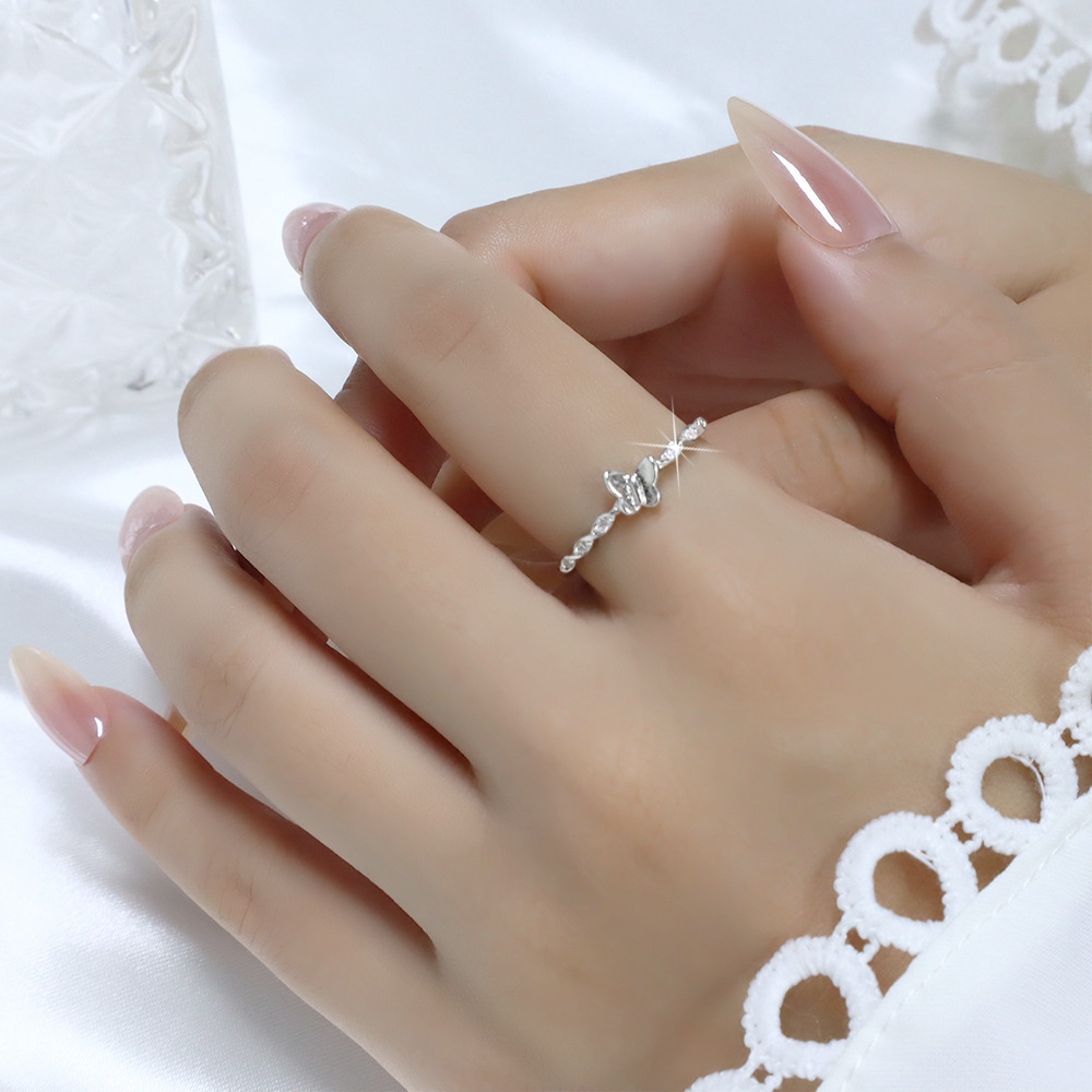 Zircon pavent l'anneau en laiton de doigt, papillon, Placage, pavé de micro zircon & pour femme, couleur platine, Vendu par PC