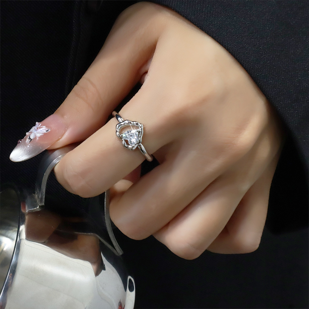 Zircon pavent l'anneau en laiton de doigt, coeur, Placage, pavé de micro zircon & pour femme, couleur platine, Vendu par PC
