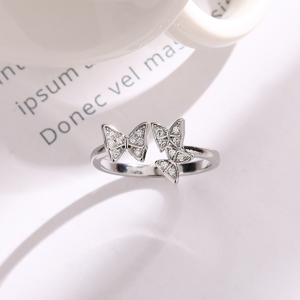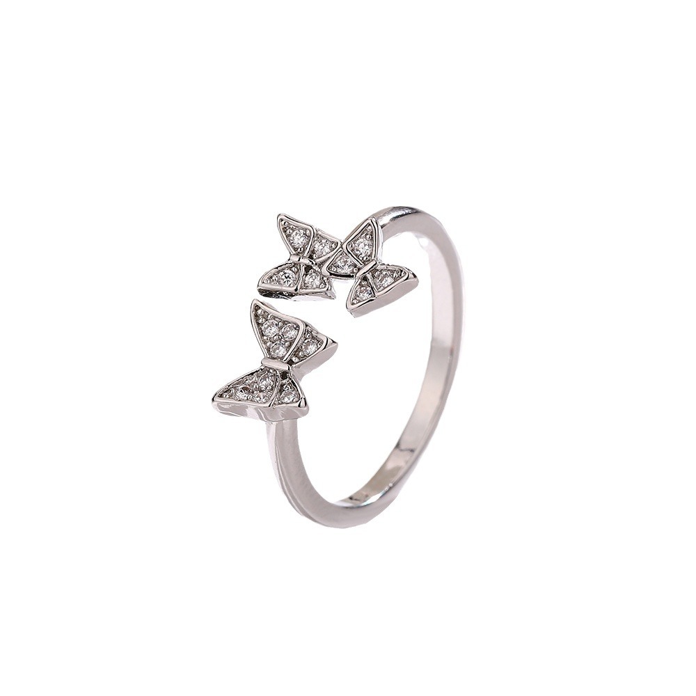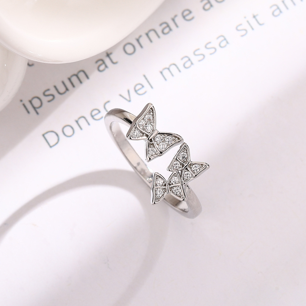 Zircon pavent l'anneau en laiton de doigt, papillon, Placage, pavé de micro zircon & pour femme, couleur platine, Vendu par PC