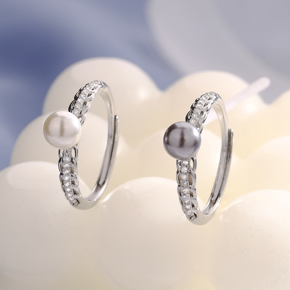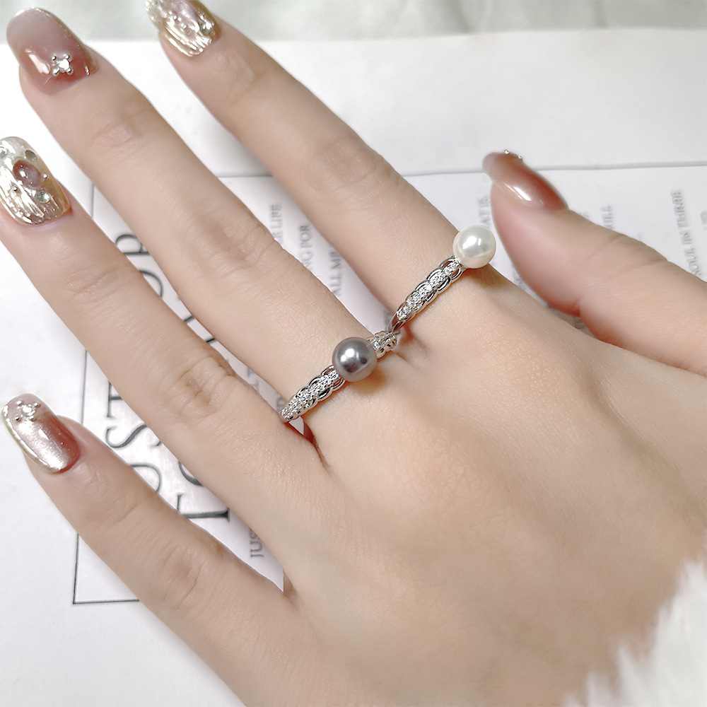 Zircon pavent l'anneau en laiton de doigt, avec Shell Pearl, Placage, pavé de micro zircon & pour femme, plus de couleurs à choisir, Vendu par PC