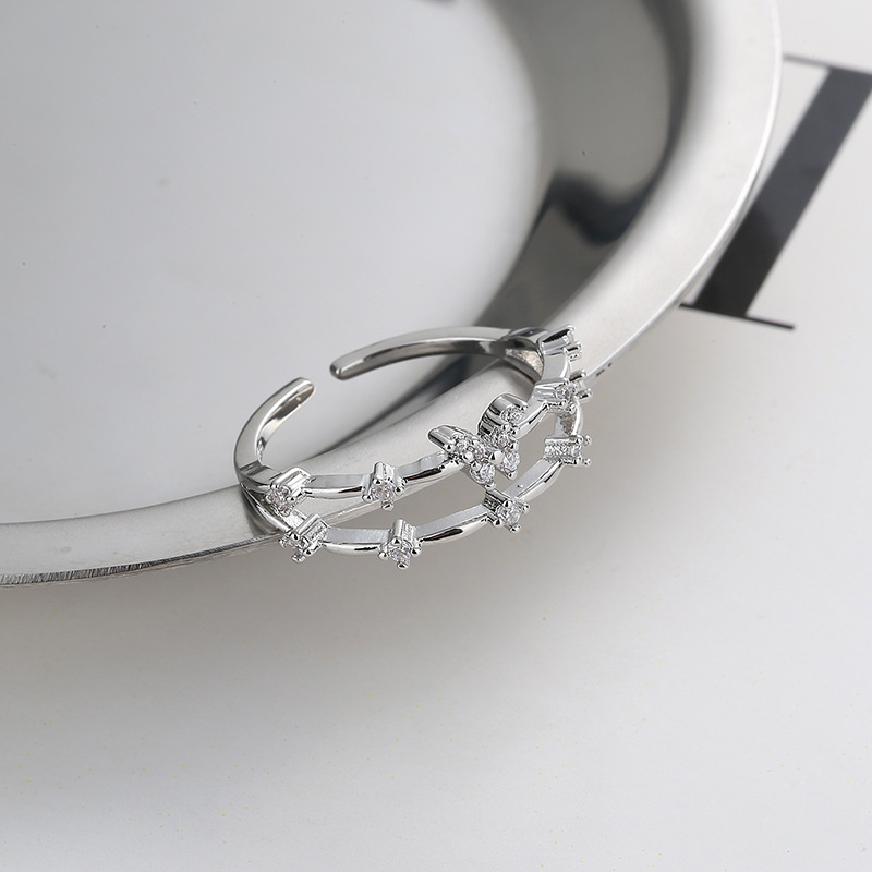 Zircon pavent l'anneau en laiton de doigt, Alliage de cuivre, Motif géométrique, Placage de couleur platine, pavé de micro zircon, plus de couleurs à choisir, 7*7mm, Vendu par PC