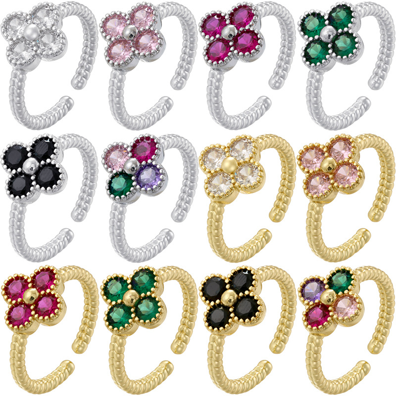Zircon pavent l'anneau en laiton de doigt, fleur, Placage, pavé de micro zircon, plus de couleurs à choisir, 7mm Vendu par PC