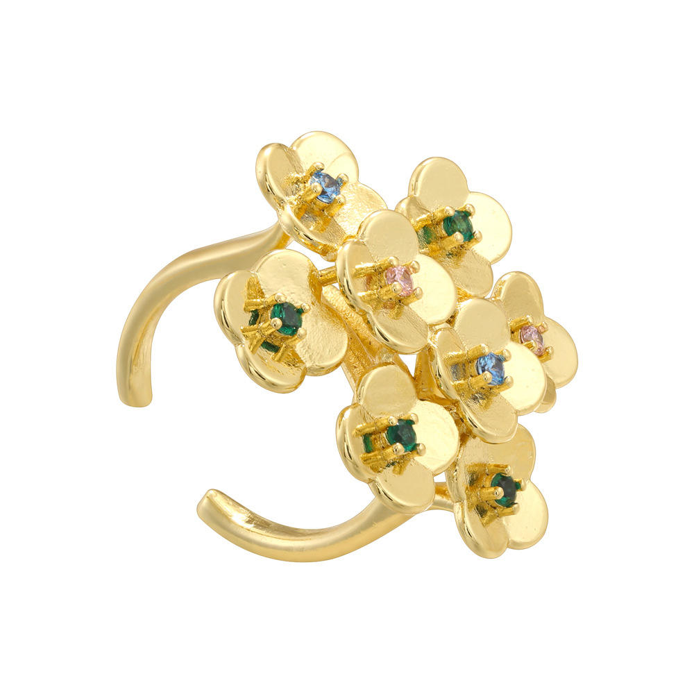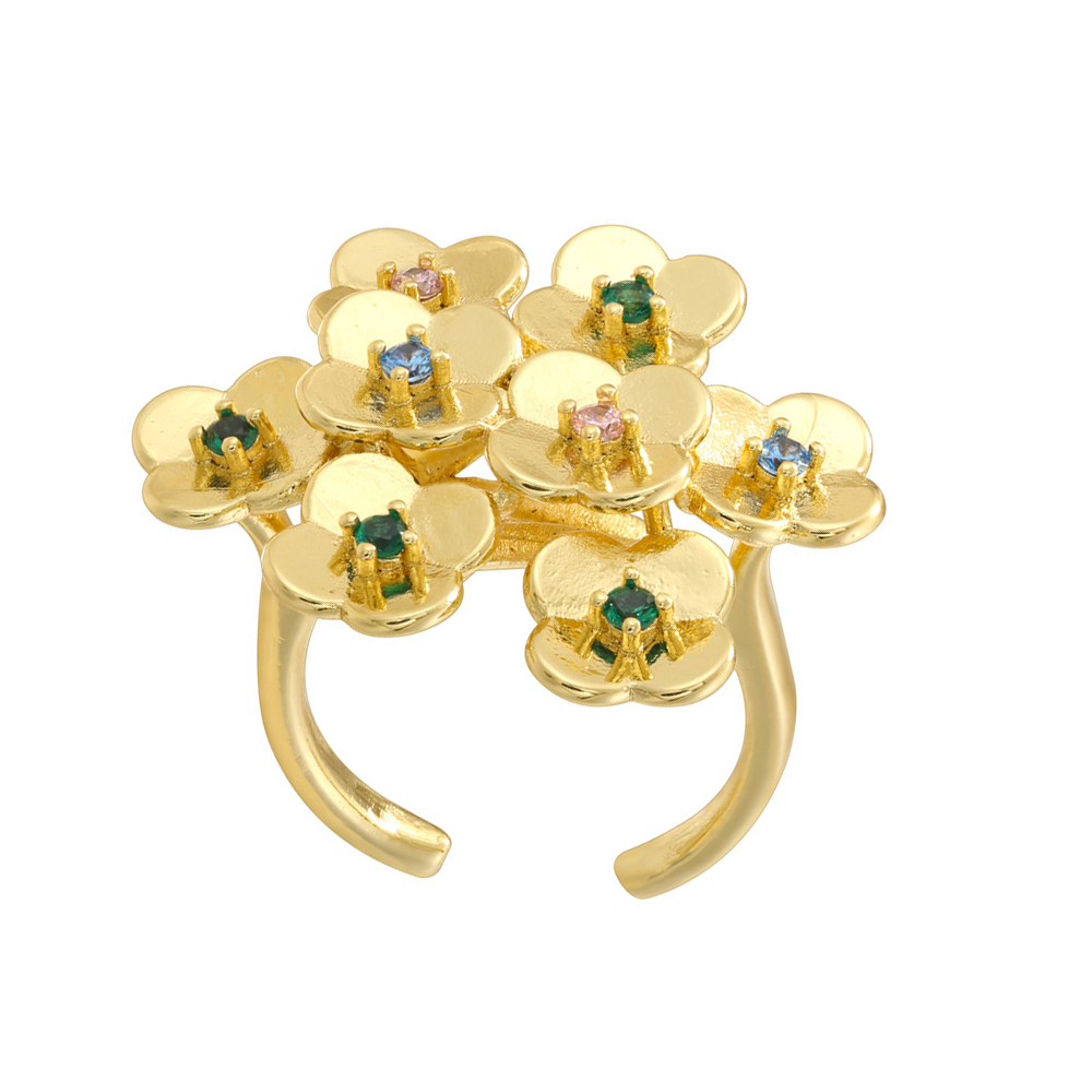Zircon pavent l'anneau en laiton de doigt, fleur, Placage, bijoux de mode & pavé de micro zircon & pour femme, plus de couleurs à choisir, 29x25.5mm, Vendu par PC