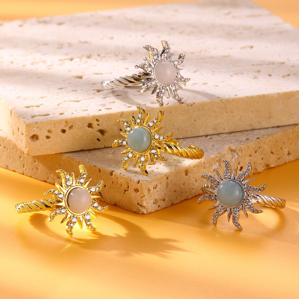 Zircon pavent l'anneau en laiton de doigt, avec résine, soleil, Placage, pavé de micro zircon & pour femme, plus de couleurs à choisir, Vendu par PC