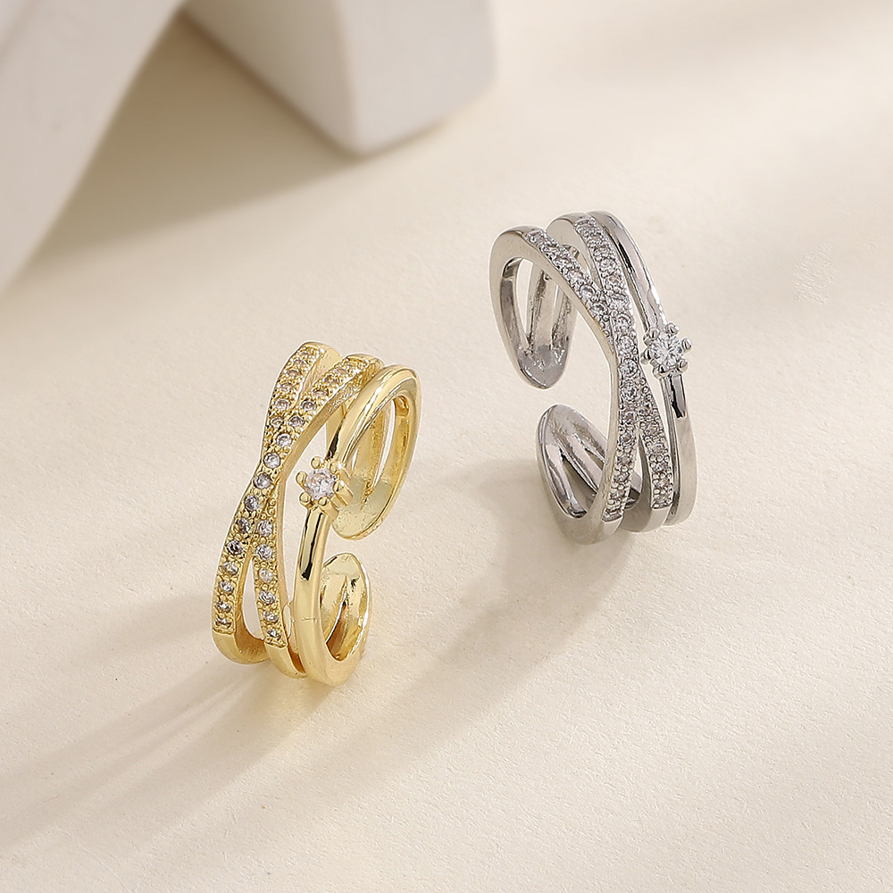 Zircon pavent l'anneau en laiton de doigt, Placage, normes différentes pour le choix & pavé de micro zircon & pour femme & creux, plus de couleurs à choisir, protéger l'environnement, sans nickel, plomb et cadmium, Vendu par PC