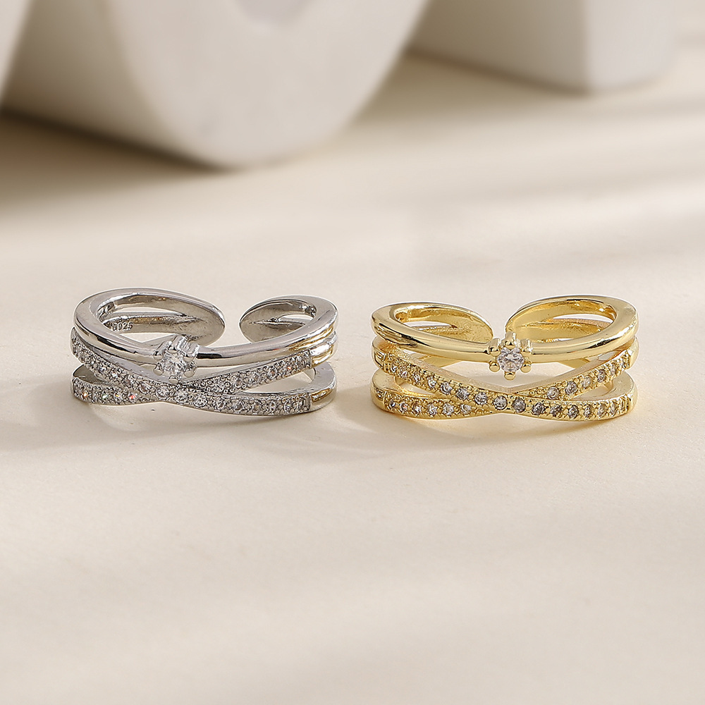 Zircon pavent l'anneau en laiton de doigt, Plaqué de platine, pavé de micro zircon, plus de couleurs à choisir Vendu par PC