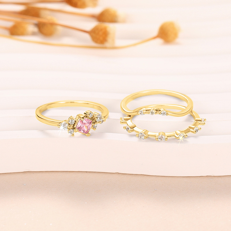 Zircon pavent l'anneau en laiton de doigt, Placage, trois pièces & normes différentes pour le choix & pavé de micro zircon & pour femme, plus de couleurs à choisir, Vendu par fixé