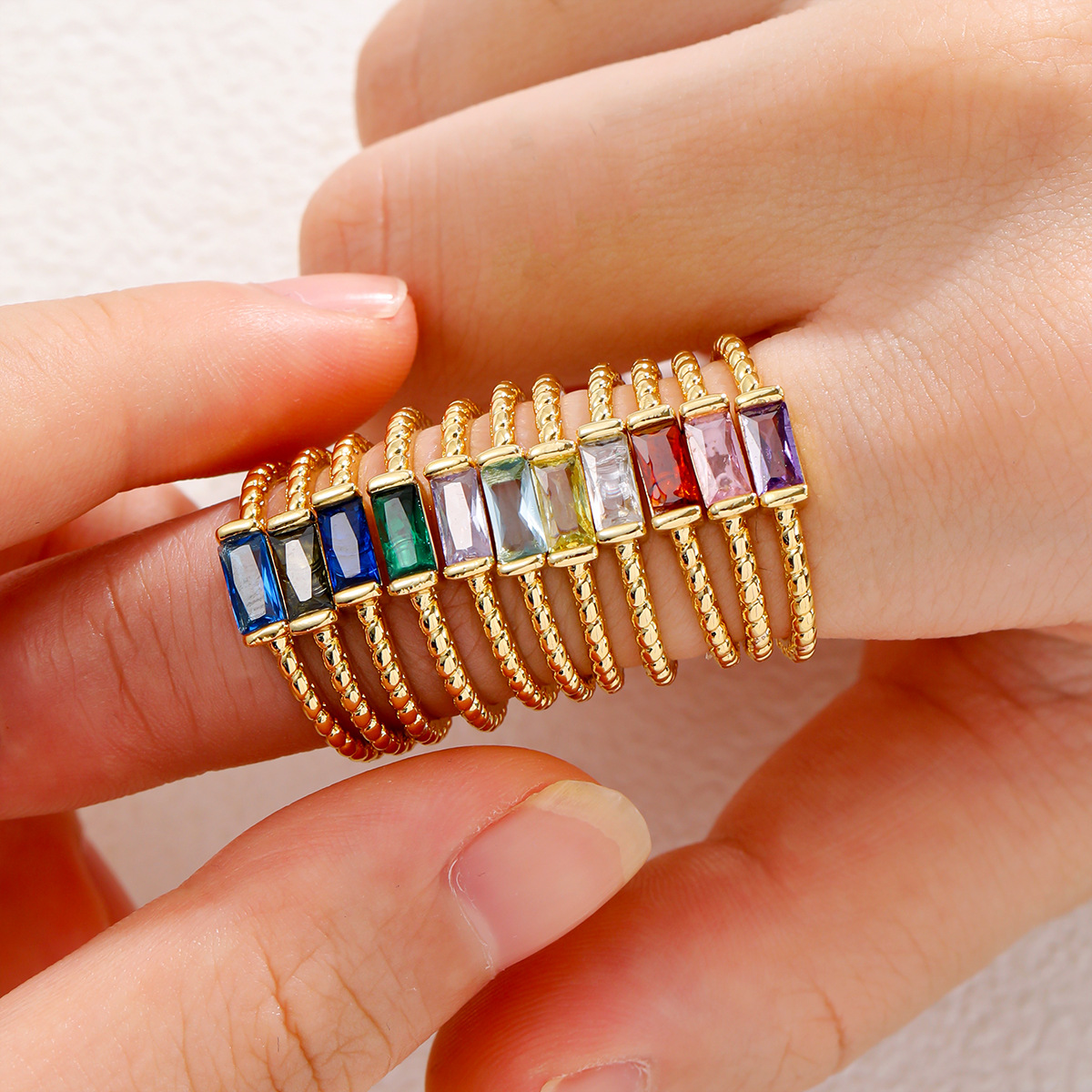 Zircon pavent l'anneau en laiton de doigt, Alliage de cuivre, Motif géométrique, Placage de couleur platine, pavé de micro zircon, plus de couleurs à choisir, 7*7mm, Vendu par PC
