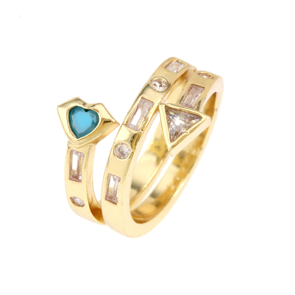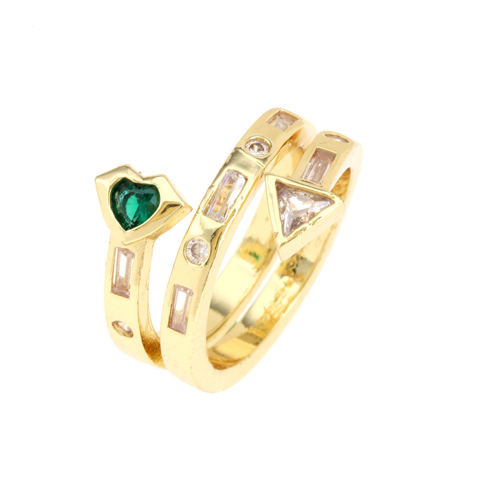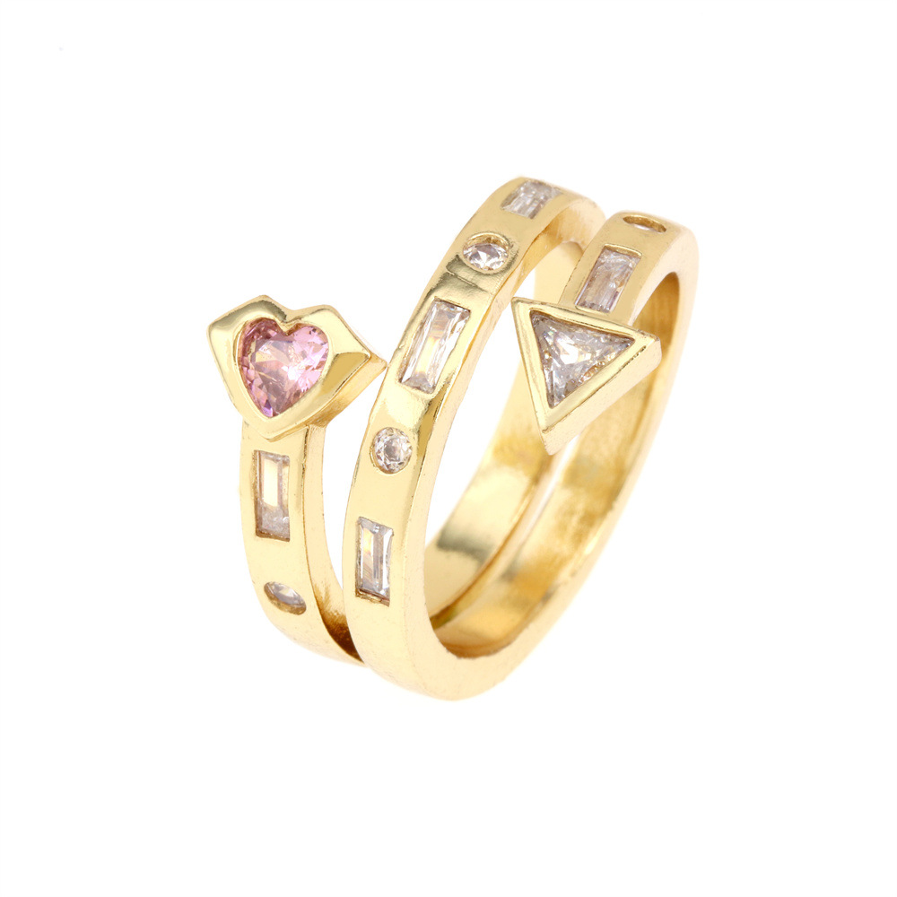 Zircon pavent l'anneau en laiton de doigt, coeur, Placage de couleur d'or, pavé de micro zircon & pour femme, plus de couleurs à choisir, inner diameter:17~20mm, Vendu par PC