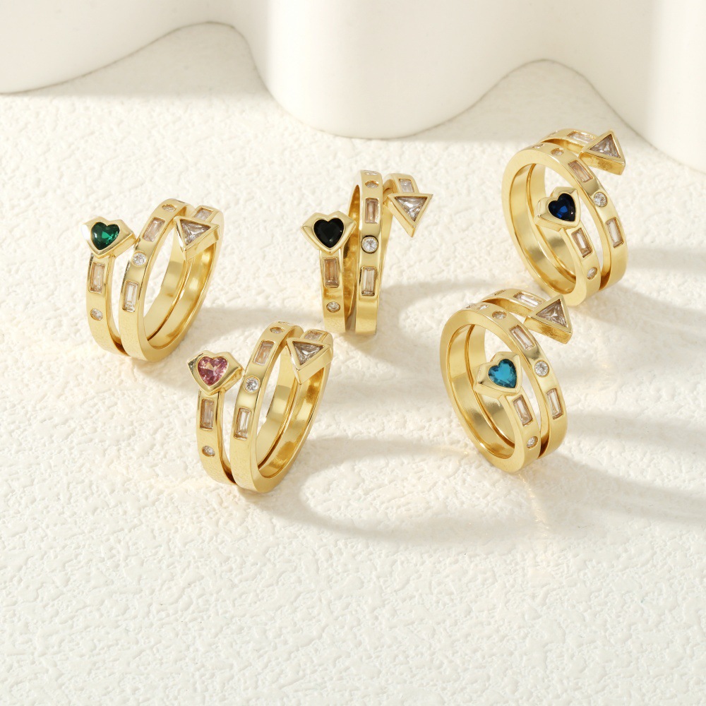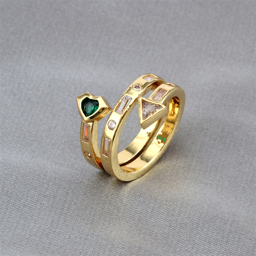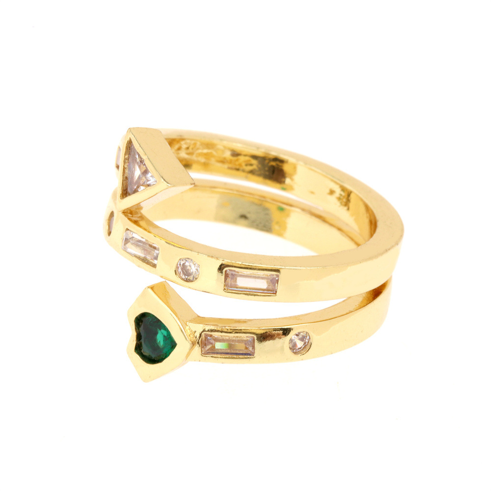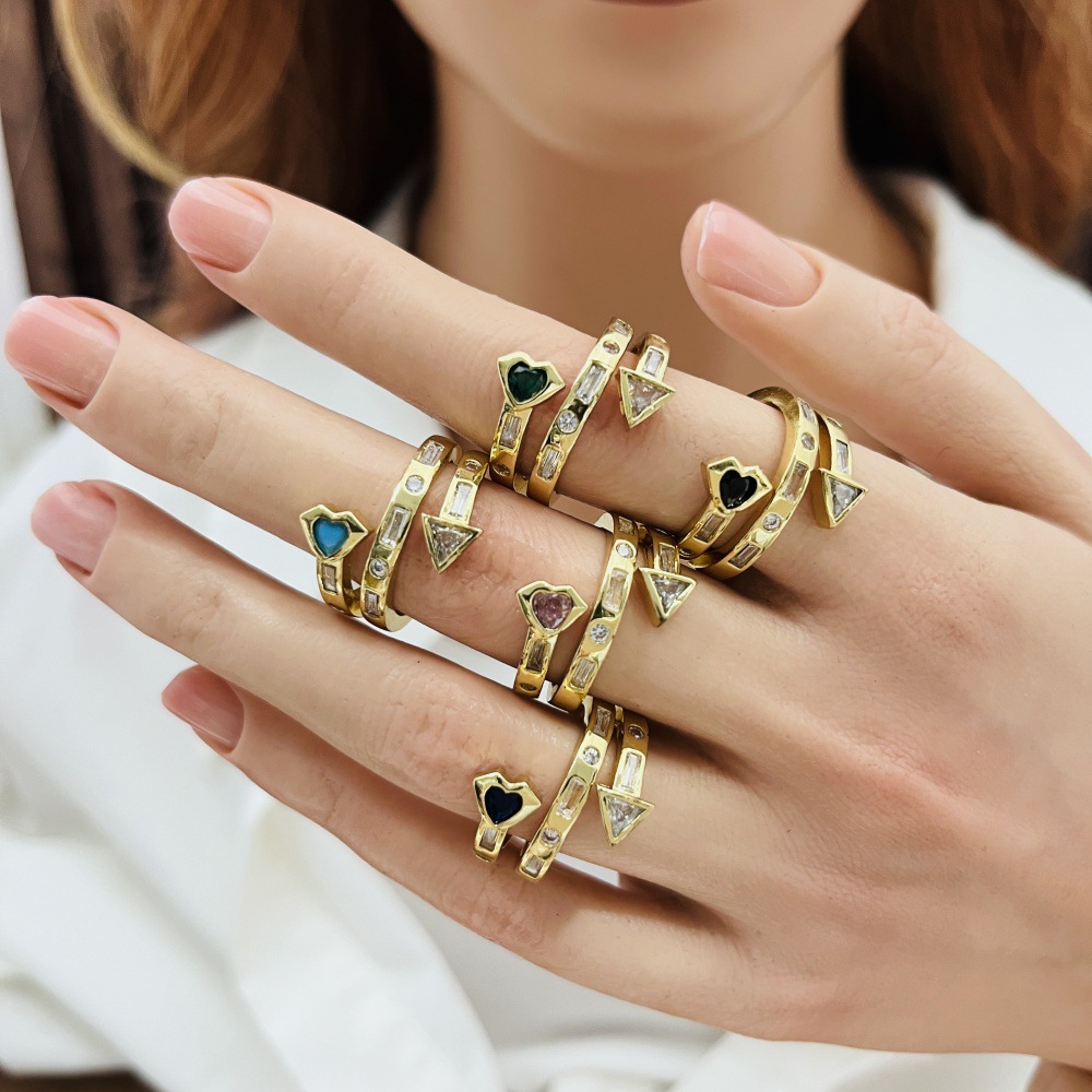 Zircon pavent l'anneau en laiton de doigt, coeur, Placage de couleur d'or, pavé de micro zircon & pour femme, plus de couleurs à choisir, inner diameter:17~20mm, Vendu par PC