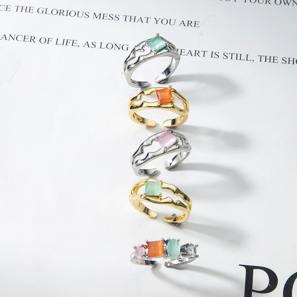 Zircon pavent l'anneau en laiton de doigt, Alliage de cuivre, Motif géométrique, Placage de couleur platine, pavé de micro zircon, plus de couleurs à choisir, 7*9mm, Vendu par PC