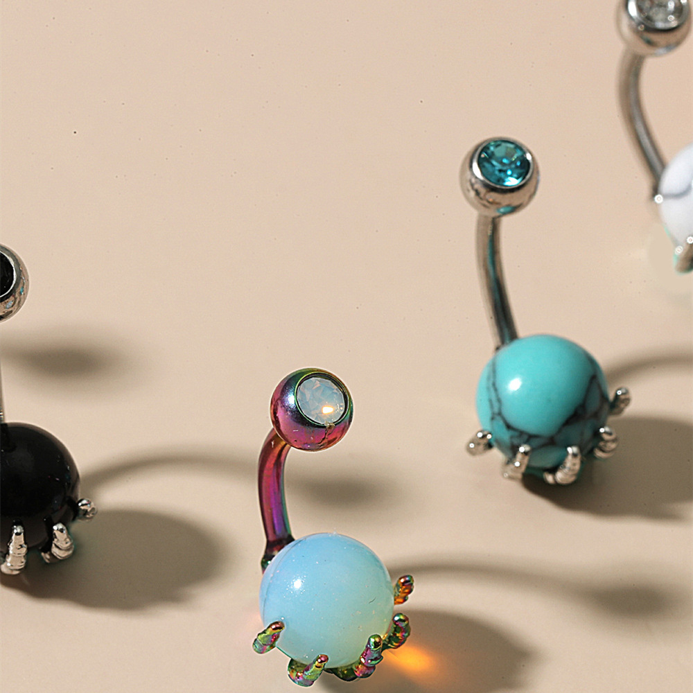 Anneau de ventre en acier inoxydable, acier inoxydable 316L, avec turquoise & cristal, Attrapeur de rêves, pour femme & facettes, plus de couleurs à choisir Vendu par PC