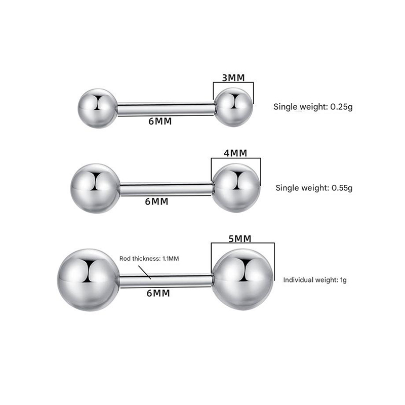 Bijoux de piercing d'oreille en acier inoxydable, haltère, plus de couleurs à choisir, 5mm, Vendu par paire