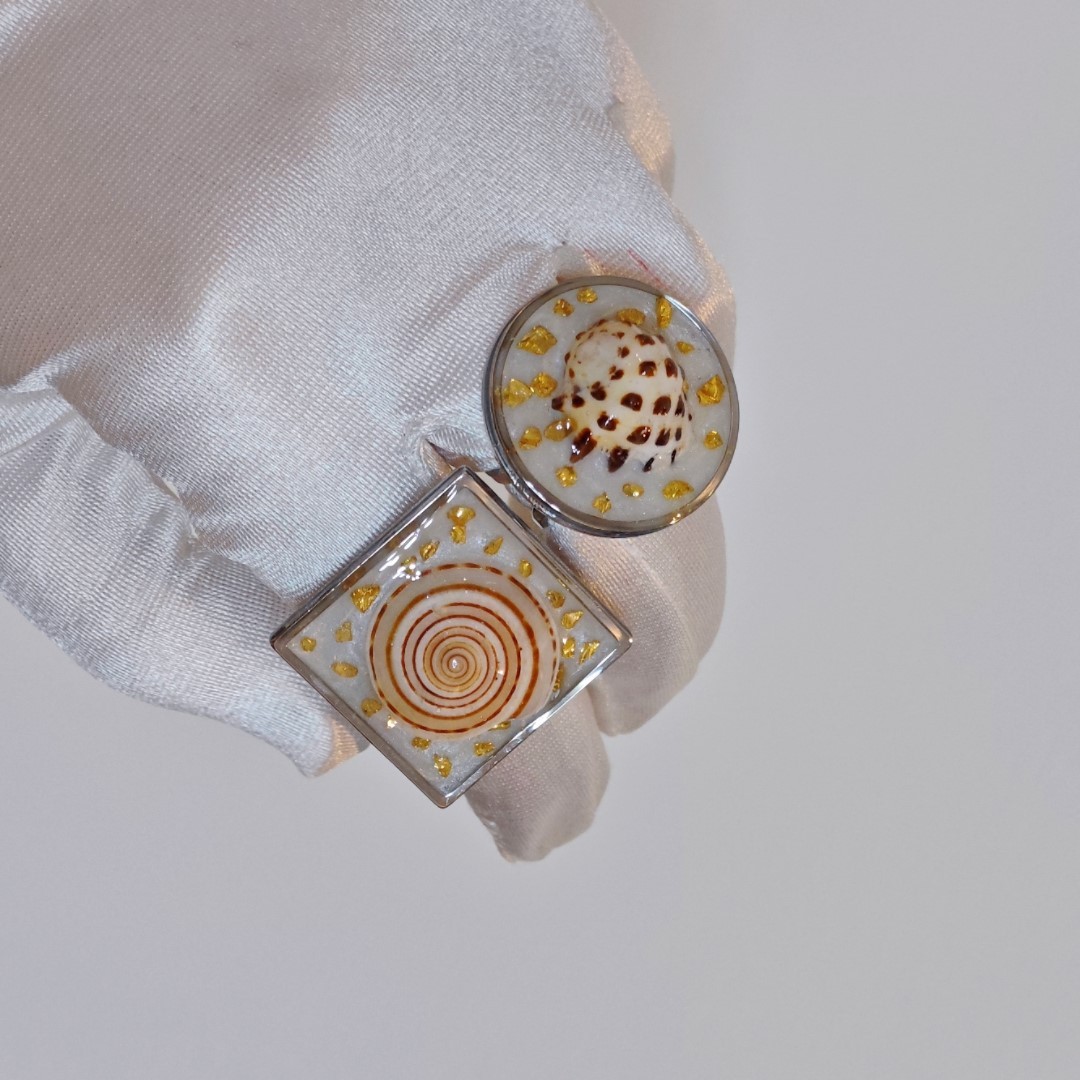 acier inoxydable Cuff Bague, avec coquille, bijoux de mode & pour femme & autocollant époxyde, Vendu par PC
