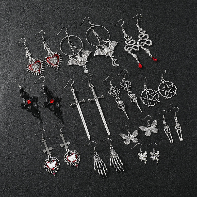 alliage de zinc Boucle d'oreille goutte, Placage, Halloween Design & Vintage & unisexe & styles différents pour le choix & avec strass, earring length 50-70mm, Vendu par paire