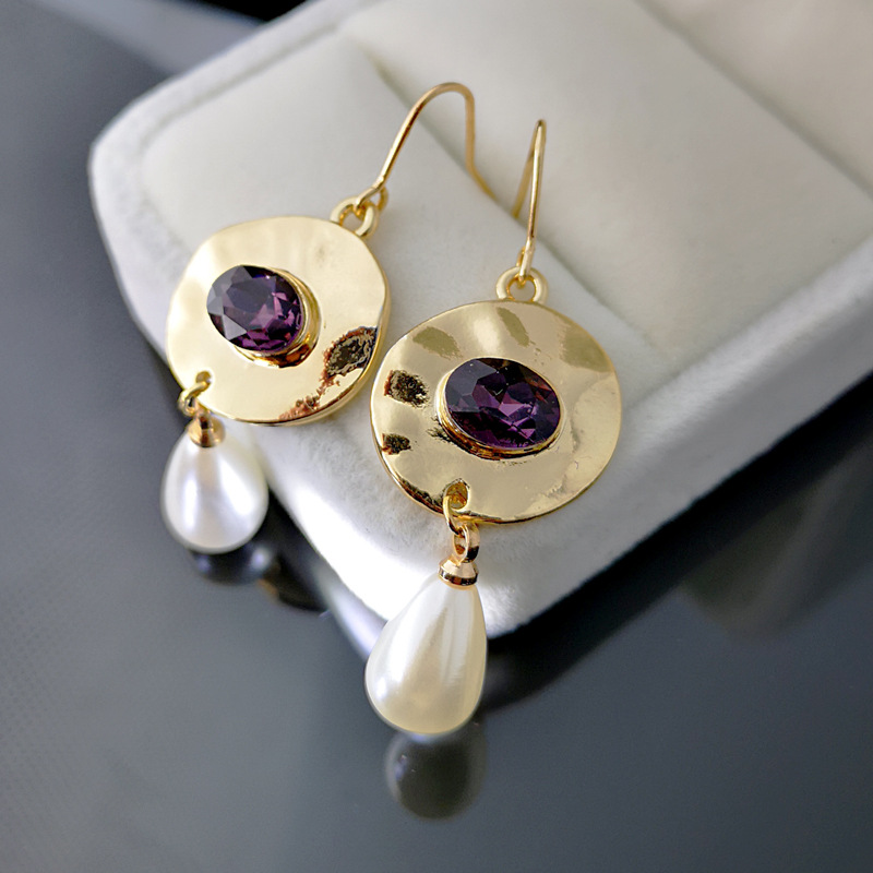 alliage de zinc Boucle d'oreille goutte, avec cristal & perle de plastique, Placage de couleur d'or, Style coréen & pour femme, 17.5x47mm, Vendu par paire
