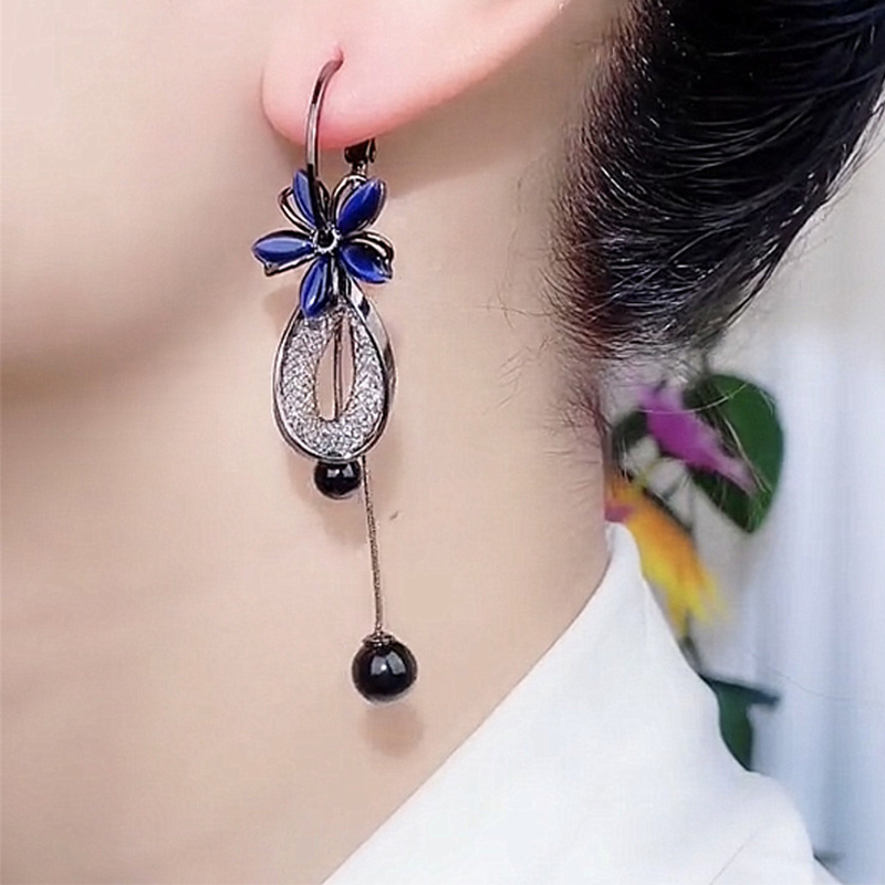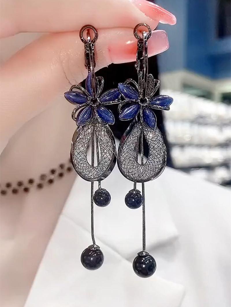 alliage de zinc Boucle d'oreille goutte, avec cristal, fleur, Placage, bijoux de mode & pour femme, 20x75mm, Vendu par paire
