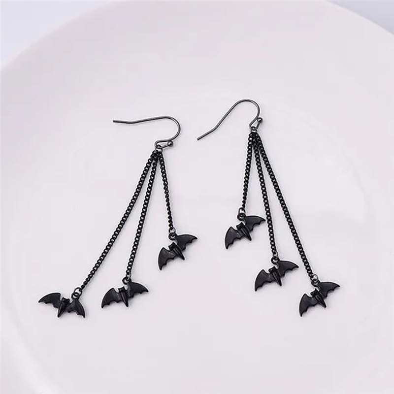 alliage de zinc Boucle d'oreille goutte, Chauve-souris, Placage, bijoux de mode & pour femme, noire, 100mm, Vendu par paire