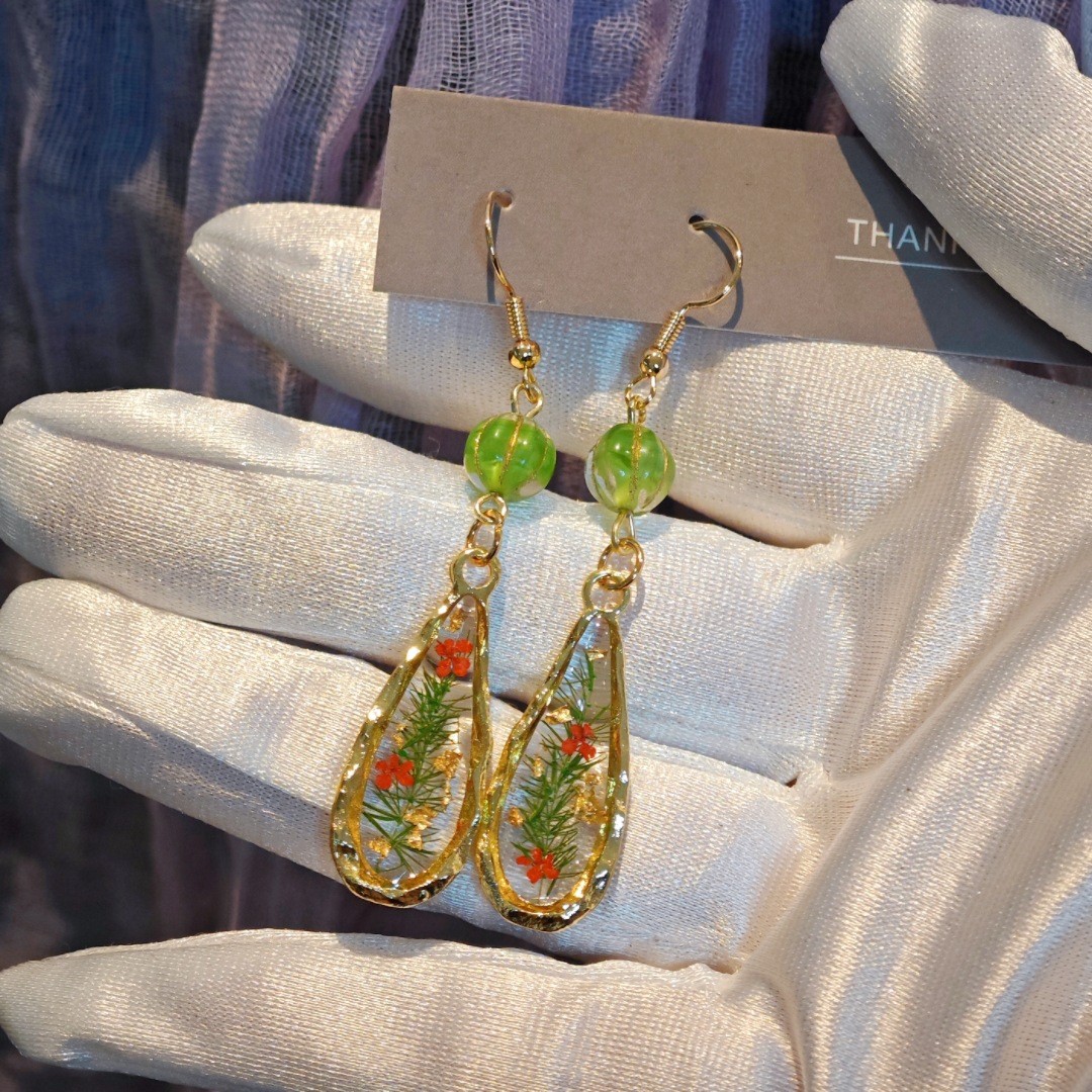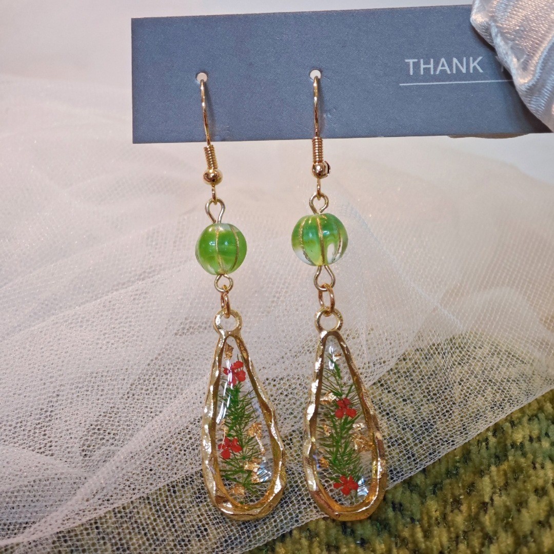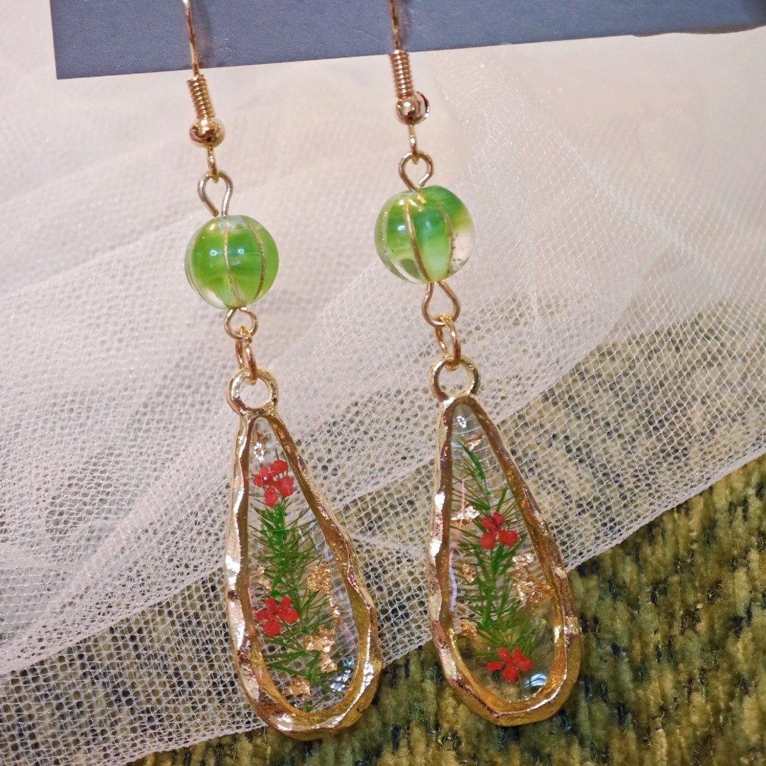 alliage de zinc Boucle d'oreille goutte, avec Fleurs séchées & résine, bijoux de mode & pour femme & autocollant époxyde, Vendu par PC