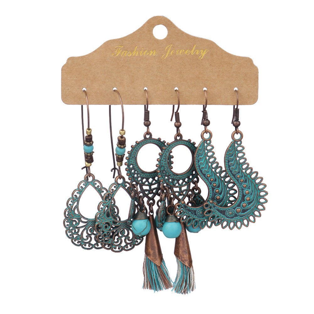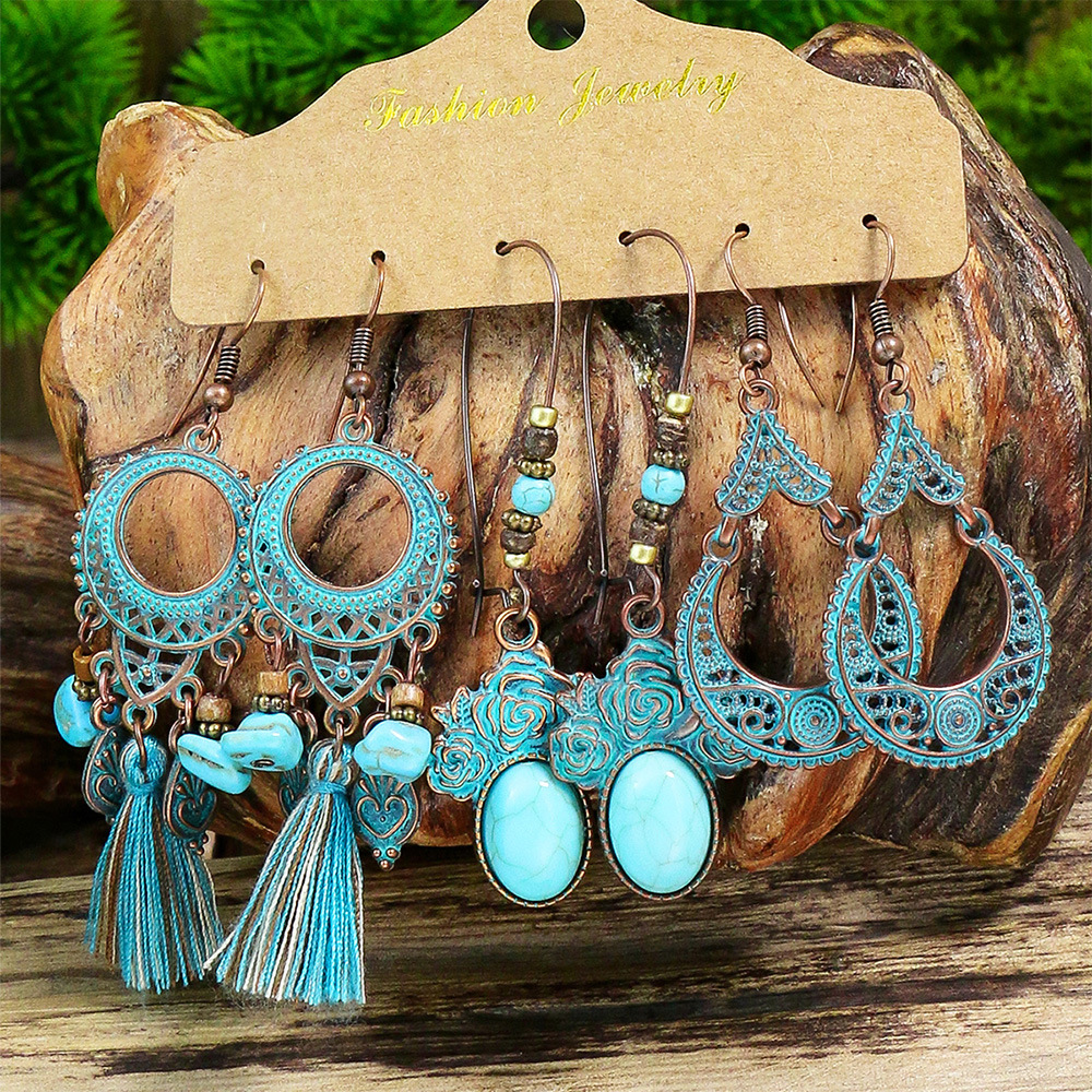 alliage de zinc Boucles d'oreilles, avec turquoise synthétique, Placage, Style bohème & styles différents pour le choix & pour femme & émail, earring length 40-100mm, Vendu par fixé