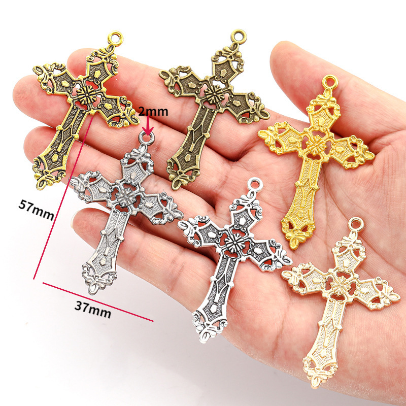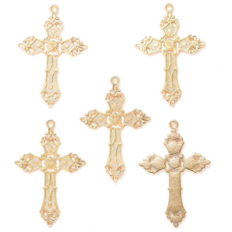alliage de zinc Pendentif, croix, Placage, DIY, plus de couleurs à choisir, 37x57mm, Trou:Environ 2mm, Environ 100PC/sac, Vendu par sac