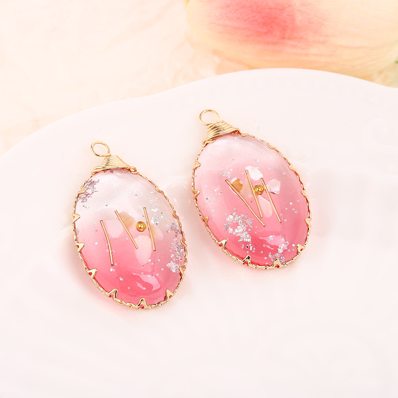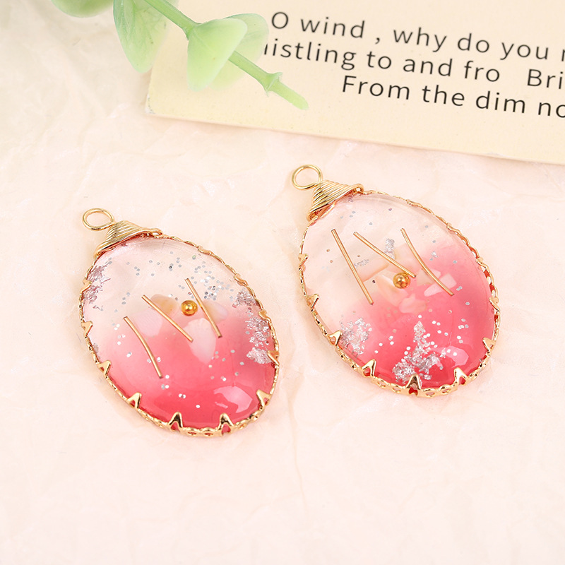 alliage de zinc Pendentif, avec Fleurs séchées & résine, ellipse, Placage, DIY & autocollant époxyde, couleurs mélangées, 33.5x20mm, Vendu par PC