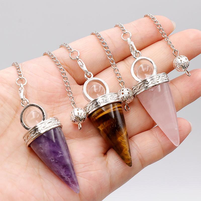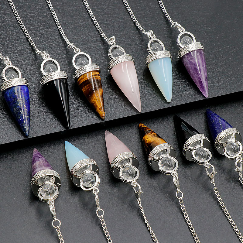 alliage de zinc Pendule, avec pierre gemme & laiton, Conique, Placage de couleur argentée, différents matériaux pour le choix, plus de couleurs à choisir, 50mm, Longueur:Environ 28 cm, Vendu par PC